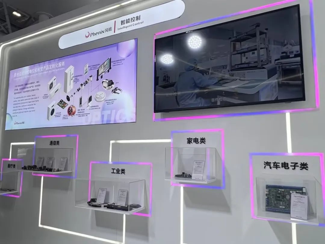 “电”主题展区展示了各类智能控制器产品,应用范围包括家电、水泵、新能源、医疗、马达、风机等。凤凰光学拥有30年智能控制领域研发经验,以及开关电源设计、交直流电机变频控制、WIFI、蓝牙技术、APP、控制器软硬件设计、结构设计、EMC设计、可靠性设计等卓越设计能力,提供从产品研发到产品交付的全流程服务。