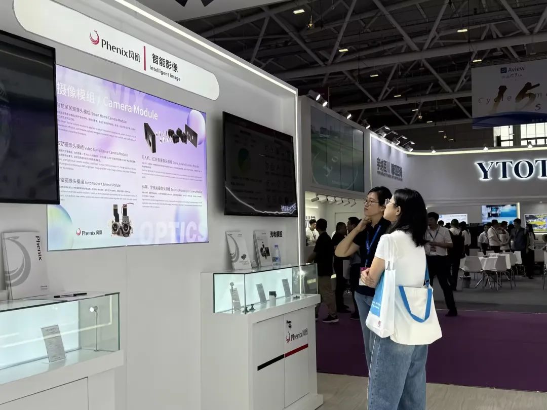 “光”展区展示了各类部品,包括金属零部件、玻璃镜片、塑胶部件、车载部品及组件、医疗零部件以及医疗内窥镜组件,产品全面,应用范围广。镜头产品是“光”展区的另一大品类。凤凰光学拥有车用前视、环视、后视、车内监控、侧视镜头等的全系列高品质车载镜头产品。产品符合IATF16949国际标准,产品线优质、齐全,生产体系柔性、高效。同时,还为客户提供全套设计、制造、测试、检验解决方案,并为客户提供优良的技术咨询和服务。凤凰光学的机器视觉镜头业务涵盖了市场上所有主流产品,提供了不同焦距以及倍率的选择,可适配不同的工业场景以及项目需求;AIoT光学镜头和影像模组广泛应用于智能家电(冰箱、集成灶)、智能硬件(智能音箱、无人机、服务机器人等)、智能产业(工业自动化、智慧医疗、智慧养老)等场景。拥有丰富的产品库,并且不断定义新产品,为广大客户提供高效、专业的产品和定制服务。