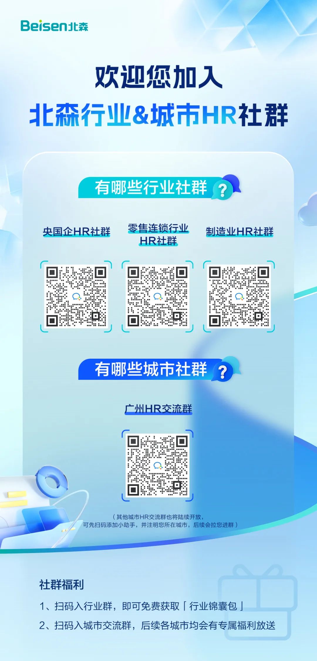为了促进行业交流,推动行业资源精准对接,北森建立“城市HR交流群”,希望聚集各城市优秀的人力资源从业者,让真正有交流、学习、分享需求的HR朋友,找到一个合适的交流平台。