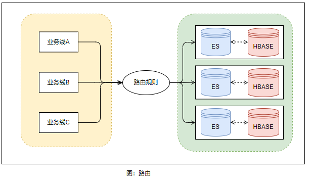 基于以上存储能力与搜索能力的扩展提升之后,我们在日志配置中心定制了【业务线<-->日志集群】的路由规则,来决定接入的其它业务线日志最终存储的日志集群,提供了更加灵活与具有弹性的业务线接入能力。