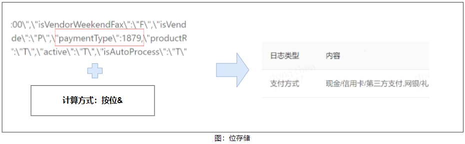 4)位存储类:此类日志内容记录的是一种计算后的结果数值。例如支付方式是通过按位与计算然后累加的结果。这种情况就需要按照一定的计算方式将其还原回去。