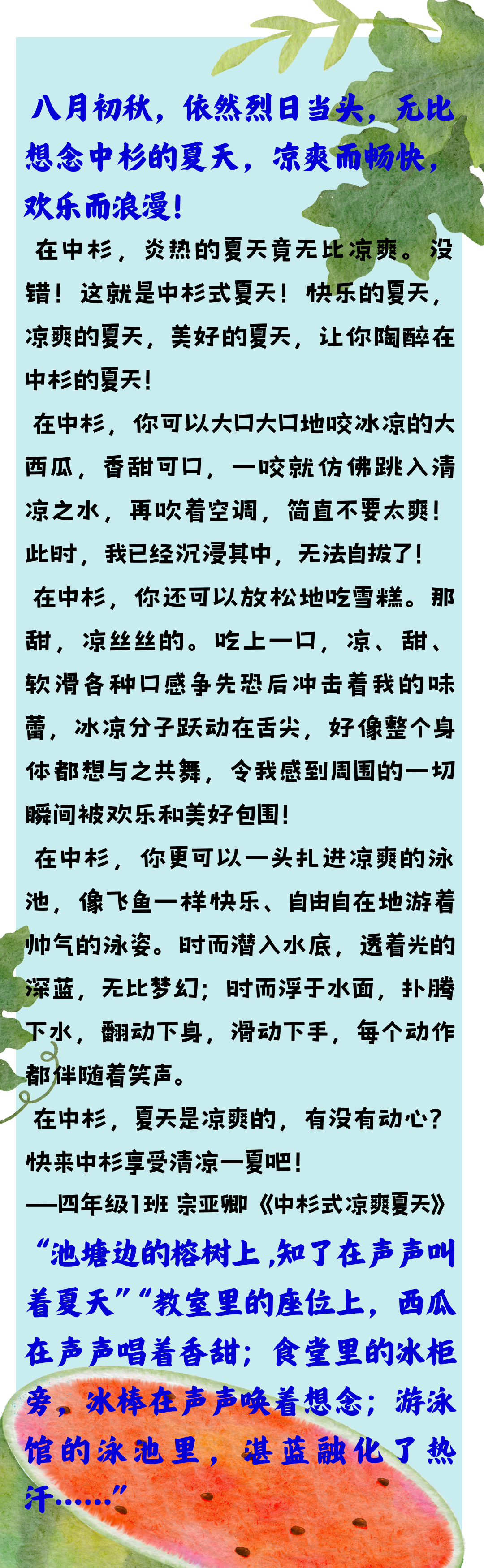 夏天,本是一个炎热的季节,但对我们中杉学生来说,却是一个充满清凉和快乐的蓝色季节!