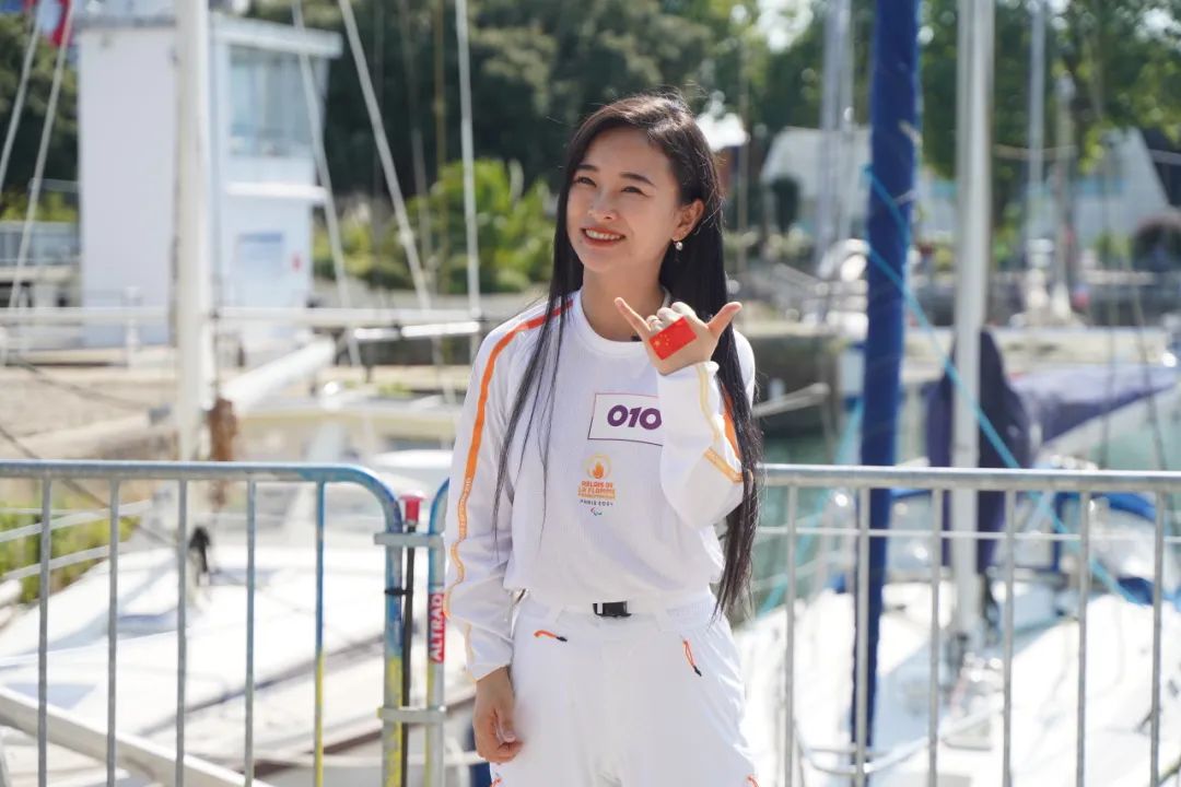 8月25日,法国洛里昂再现经典“中国牛”手势。奥林匹克全球合作伙伴蒙牛的要强大使、“义肢舞者”廖智多次做出“中国牛”手势,为中国残奥健儿加油,为中国喝彩。