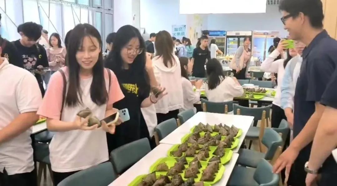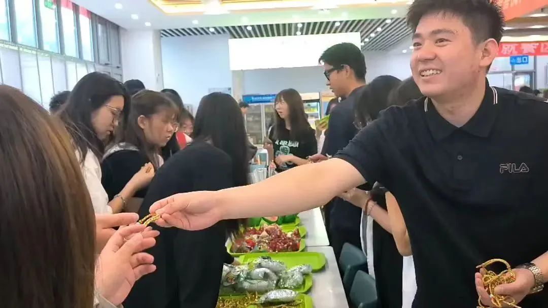 第二餐厅为同学们准备了多种口味的粽子免费领取。清香阵阵,糯米飘香,祝福伴着芬芳,好运浸透全身。