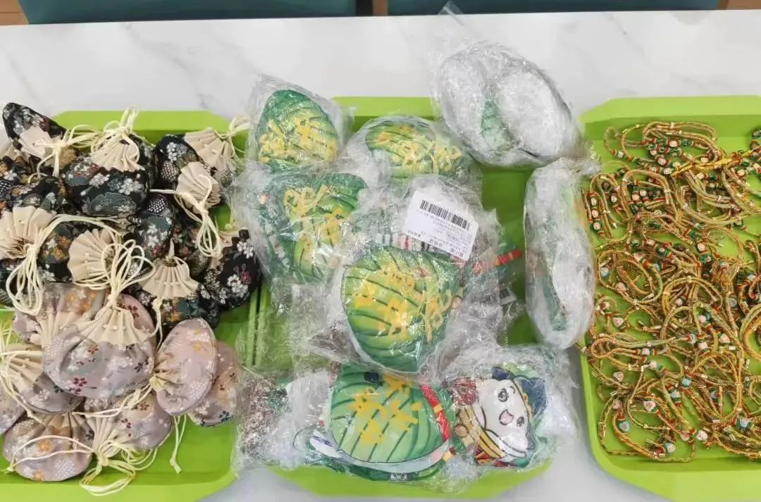 二餐厅和四餐厅为同学们准备了丰富多样的端午特色小礼品,如粽子抱枕、艾草箱包、国风香囊、端午五彩绳等多种小礼品,在四餐,包粽子或是发送朋友圈便可获得精美小礼品一个。在二餐,通过体验转转盘,便可获取小礼品。