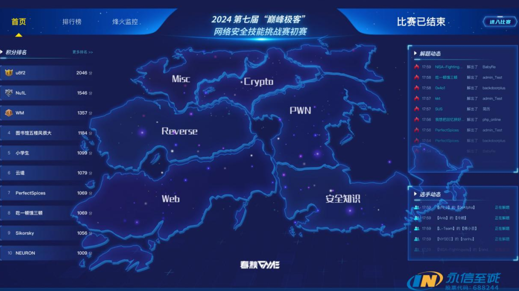 截至8月17日18时,第七届“巅峰极客”网络安全技能挑战赛初赛圆满收官。经过8小时的激烈角逐,20支优秀战队最终成功晋级。晋级战队将与4支特邀参赛战队,以及2支极客少年战队共同进入线下总决赛,在虚拟数字之都“广诚市”中开启最终的“巅峰极客”之战。
