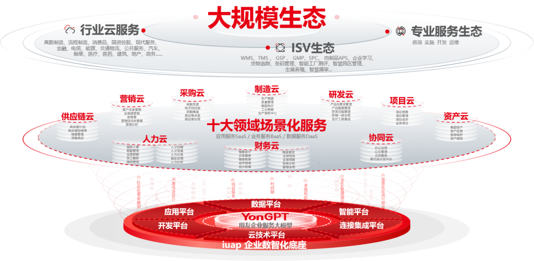 用友引领企业AI应用创新发展,企业服务大模型YonGPT重磅升级,发布YonGPT2.0。在智能化应用上,YonGPT2.0在智友、智能大搜等几个重要的产品基础上,同时推出100多个场景化的智能服务,是深懂企业服务的垂类大模型,成为企业AI应用新引擎。