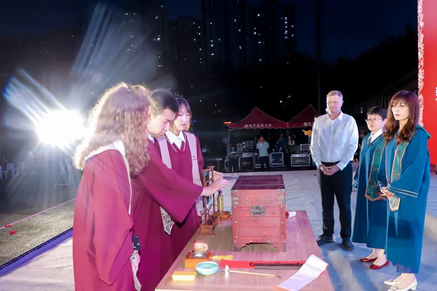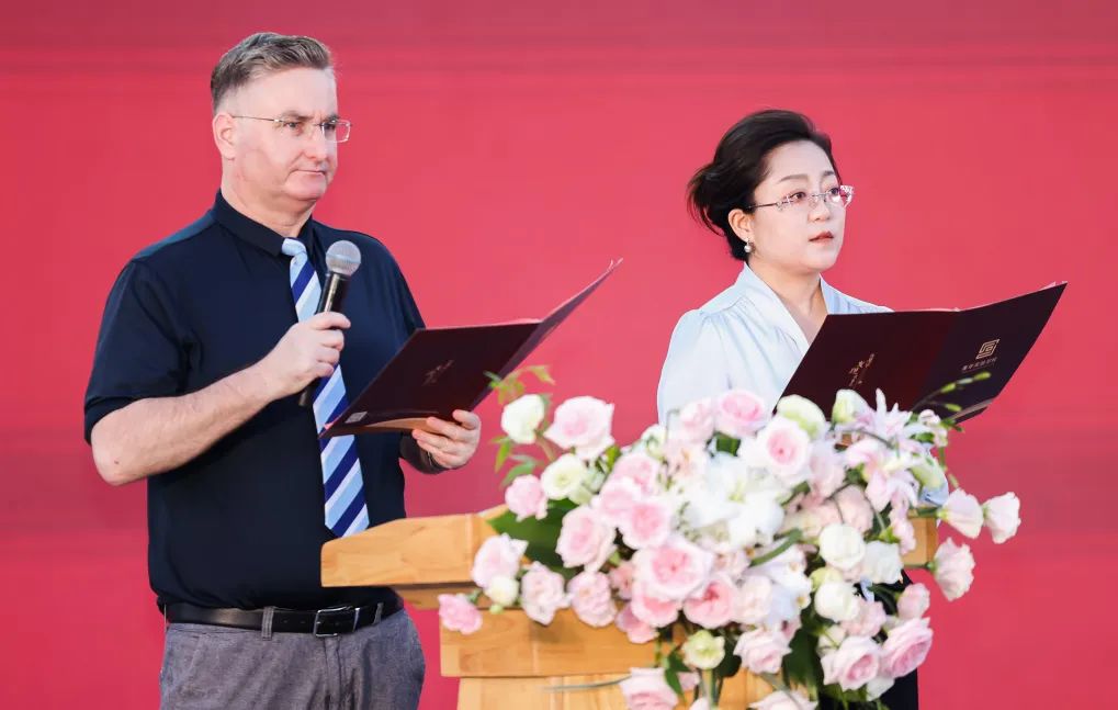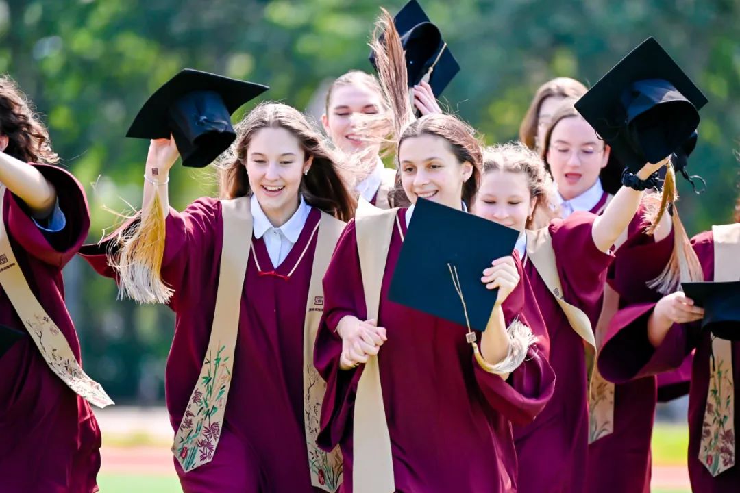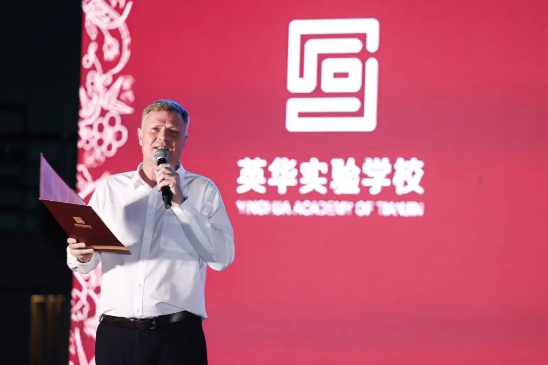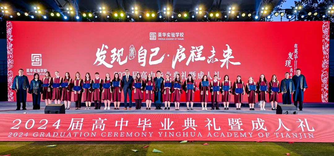 保加利亚共和国驻华大使馆副大使尤尔丹诺夫,天津市武清区教育局原党委书记、局长、天津英华实验学校原副董事程致平,英华实验学校总校校长林向阳及全体校务委员;英华附属鸿蒙幼儿园、宁河区英华实验学校、东丽区英华学校、西青法耀高级中学生态校、新城高级中学生态校及英华家校社区生态联盟代表共同见证英华2024毕业生的荣耀时刻。
