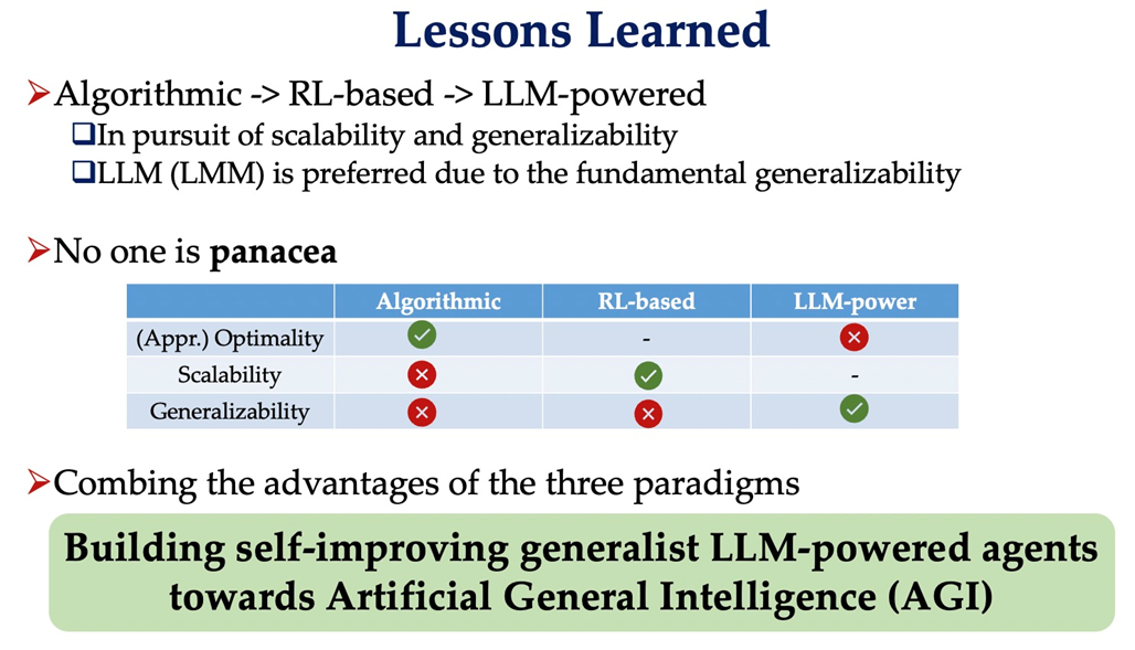 围绕Agents这一主旨,安波教授回顾了其近二十年来在这一方向上不断深耕所取得的一些进展,总结了从中获得的经验教训,并展望了这一主旨未来的潜在发展方向。