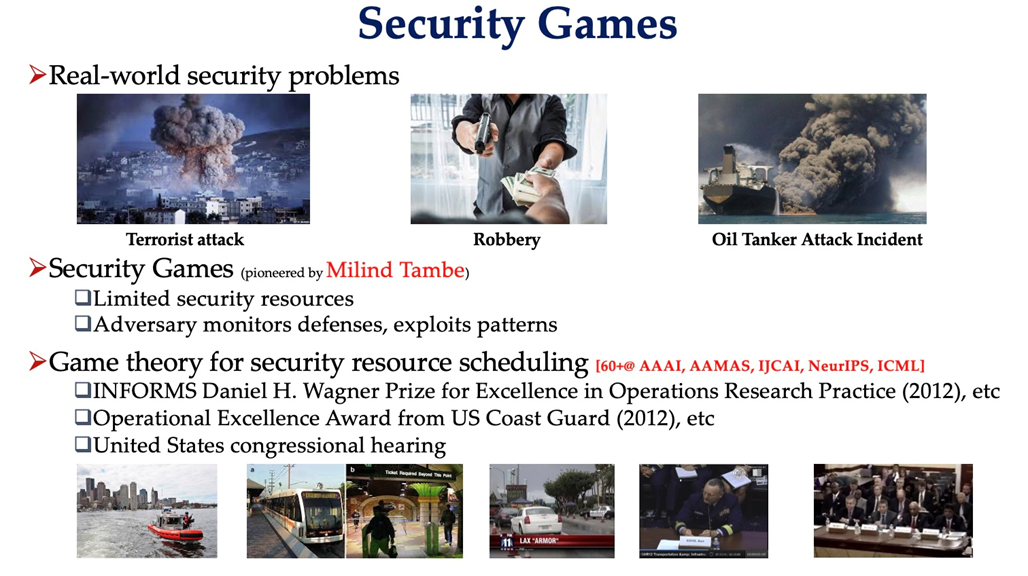 Games),取得了一系列的研究成果,特别是在安全博弈领域,其研发的算法被部署到现实世界的应用场景中,取得了显著的安全防御效果。