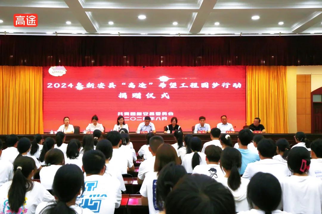 8月19日下午,高途教育科技集团在新安县举行了“2024年新安县‘高途’希望工程圆梦行动”捐赠仪式,为受助学子圆梦大学。