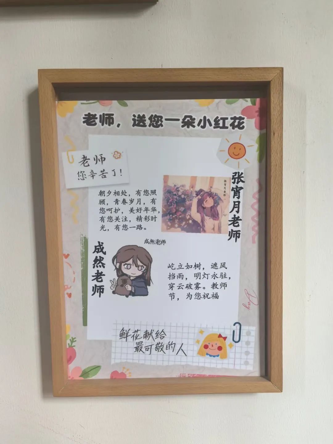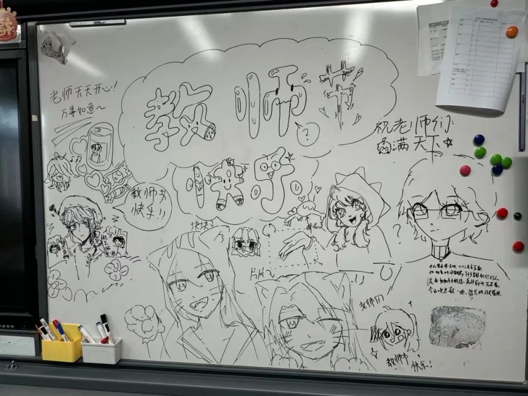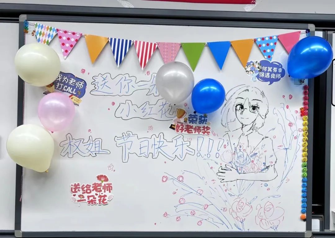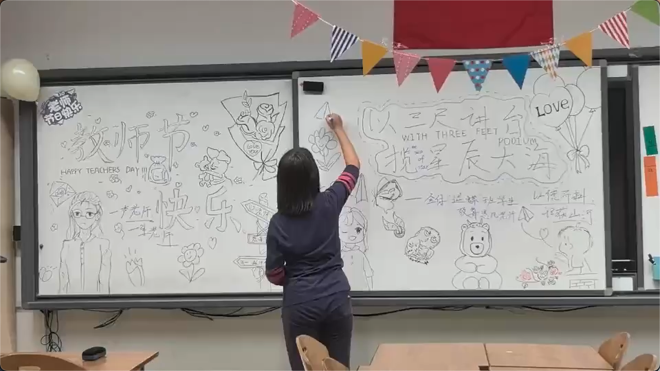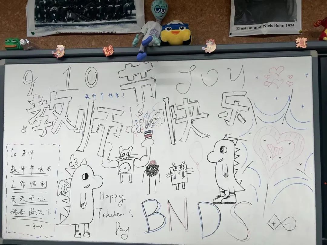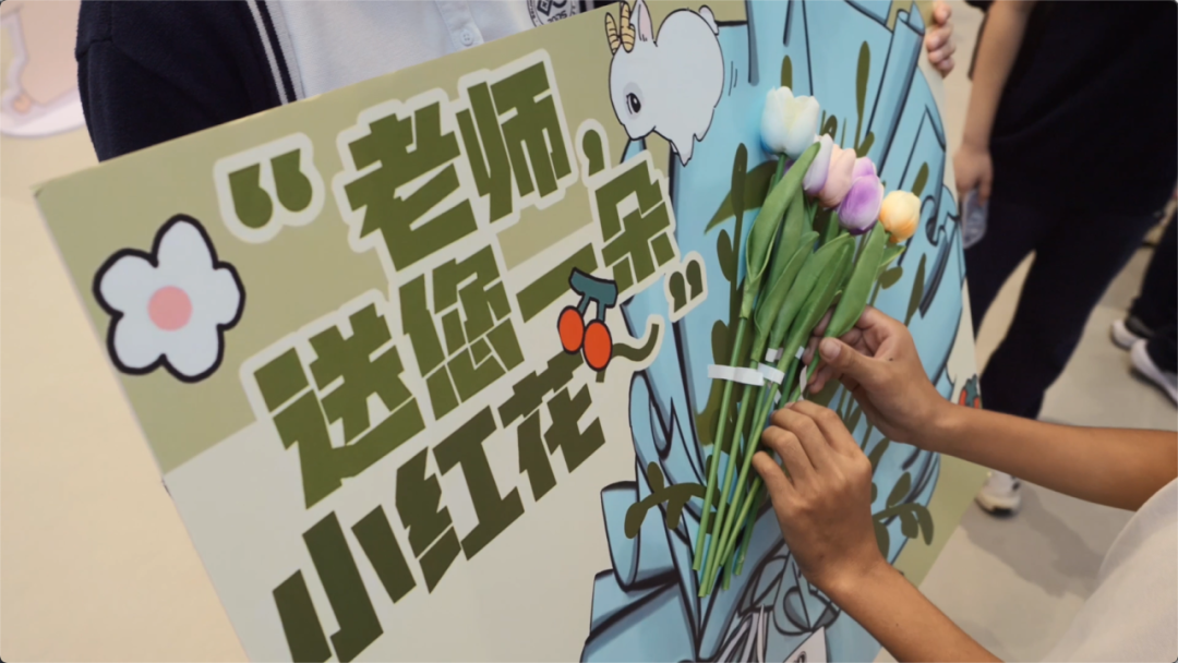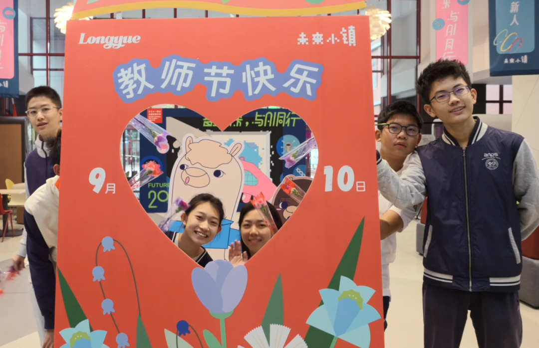 伴随着清晨的阳光洒进未来小镇,西门大厅里,一组组由龙娃们绘制的教师节主题海报,各自诉说着十一龙樾学子对老师们的满满爱意。在第40个教师节,北京十一龙樾师生们在校园里开展了庆祝教师节活动。主题海报、手工作品、抽奖鲜花、游园会、画像展、祝福画框……龙娃们对龙师们的“花式祝福”,充溢着未来小镇的每个角落。