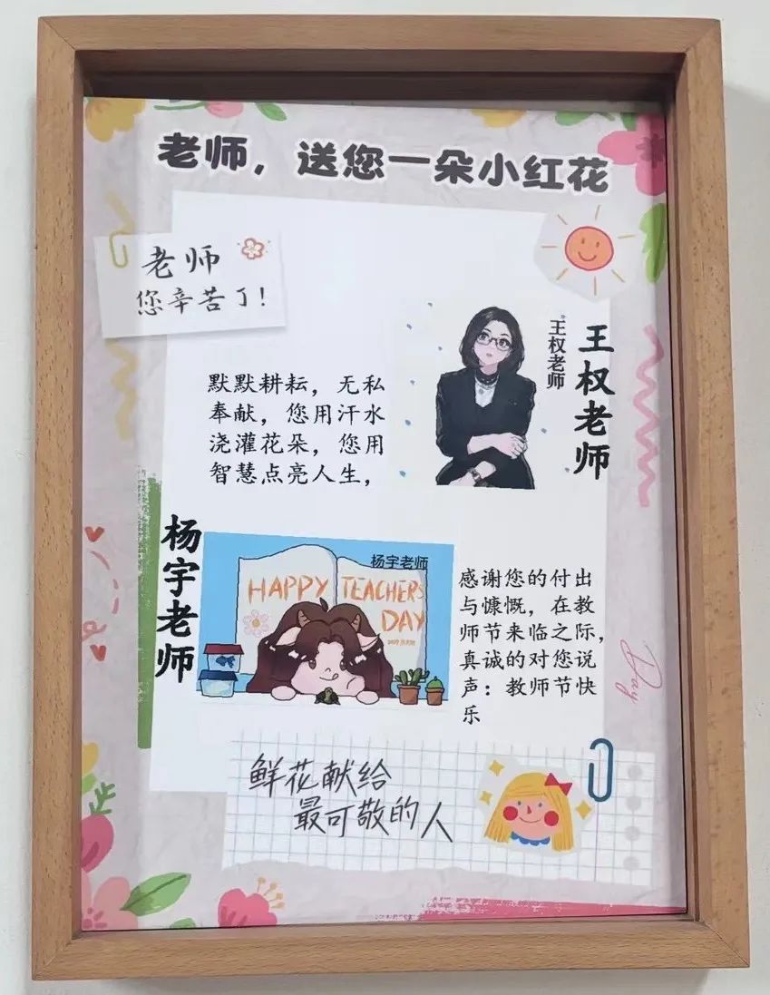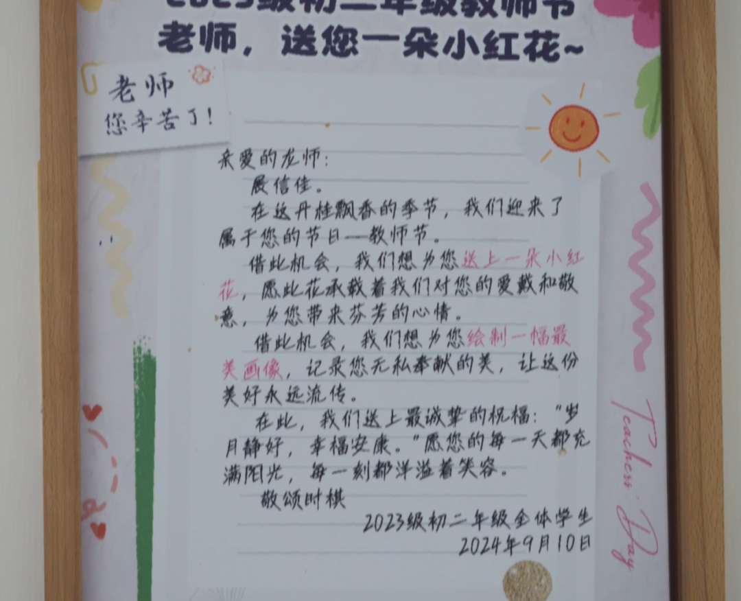 在活动上,龙师收到龙娃们设计的教师节主题祝福画框。祝福画框以未来小镇和教师节为元素,采用或写实、或诗意的设计手法,承载着龙娃们的浓浓尊师意,也彰显了未来小镇的美育教育特色。