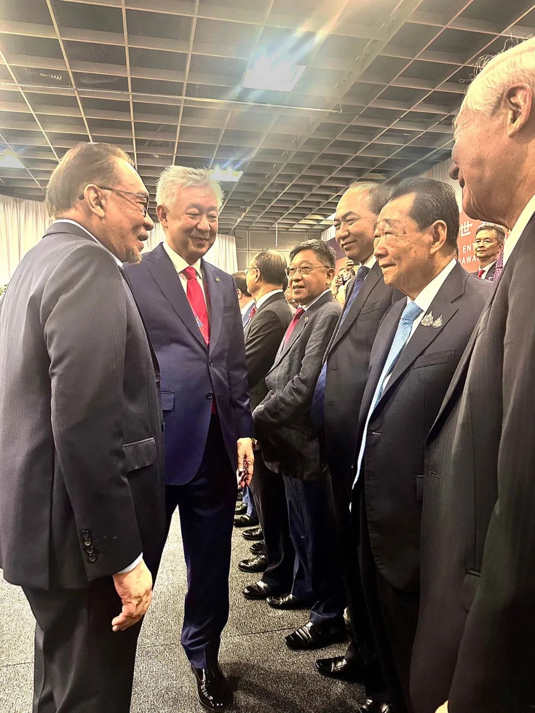 马来西亚总理安瓦尔亲切会见了谢国民集团资深董事长等第十七届世界华商大会与会嘉宾,并与他们亲切交流。