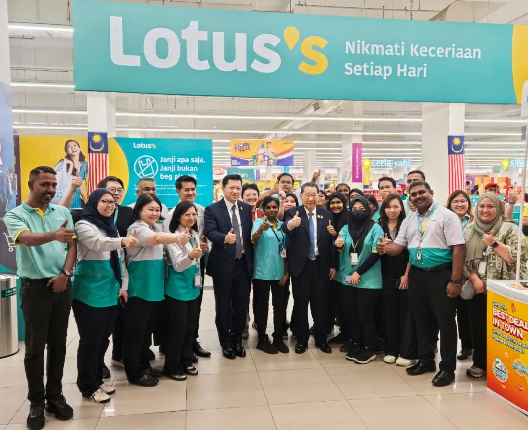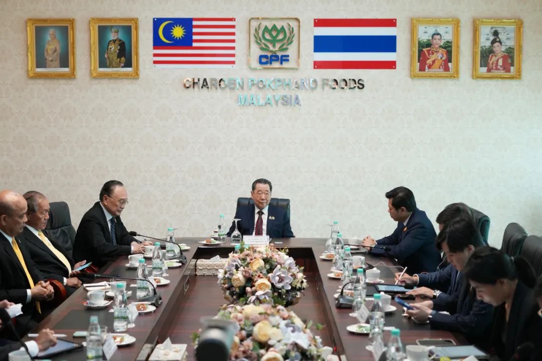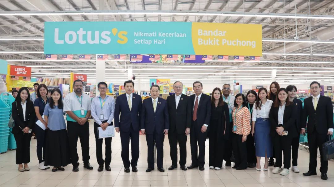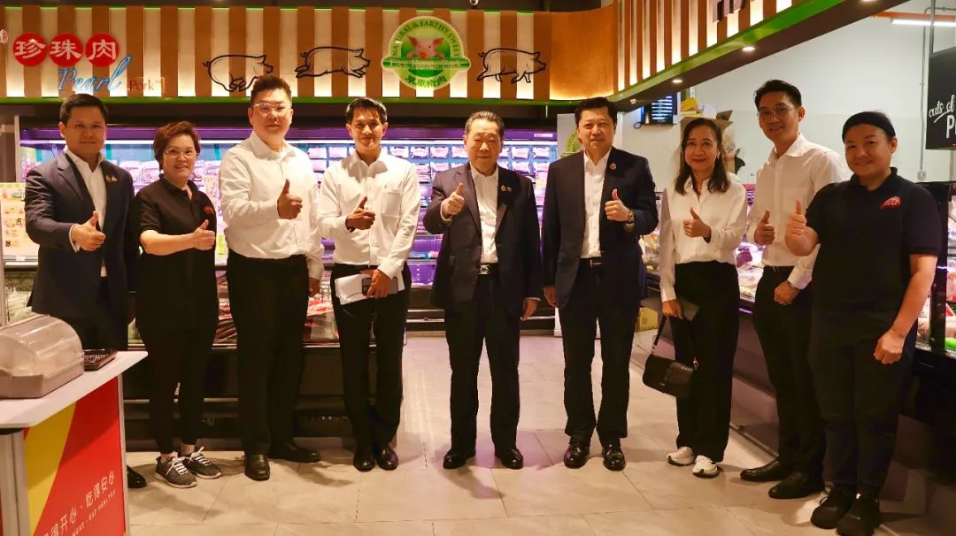 ▲谢国民集团资深董事长(左七)、谢镕仁集团首席执行官(左六)考察Lotus Kepong门店。蔡益光集团资深副董事长(左八)、谢毅集团资深副董事长(左九)等一同考察。▲谢国民集团资深董事长(一排左七)、谢镕仁集团首席执行官(一排左五)和Lotus Kepong门店员工合影。▲谢国民集团资深董事长(中)、谢镕仁集团首席执行官(右四)考察CPF马来西亚安心猪肉门店。黄伟伟集团中国战略发展与合作总裁(左一)一同考察。▲谢国民集团资深董事长(中)、谢镕仁集团首席执行官(右四)、蔡益光集团资深副董事长(左三)听取CPF马来西亚相关业务经营业绩汇报。▲谢国民集团资深董事长(一排中)、谢镕仁集团首席执行官(一排左七)与CPF马来西亚团队合影留念。蔡益光集团资深副董事长(一排右七)、谢毅集团资深副董事长(一排左六)、CPF马来西亚董事长Sompop先生(一排右六)等一同参加合影。12日上午,谢国民集团资深董事长、谢镕仁集团首席执行官接见了CPF马来西亚高管团队,对CPF马来西亚陆生动物养殖和水产养殖业务等作重要指示,并赴PJ 榴莲市场 D King店考察。蔡益光集团资深副董事长、谢镕仁集团首席执行官及夫人、谢毅集团资深副董事长、CPF 马来西亚董事长Sompop先生、CPF首席运营官Sujin先生、CPF 马来西亚总裁Montri 先生、黄伟伟集团中国战略发展与合作总裁、CPF马来西亚首席财务官Therrapong先生、CP Fresh首席执行官Miss Natshachanok(郑智慧)、莲花超市马来西亚首席执行官Saksit先生、Miss Katesurang、Miss Thita、Miss Maneerat、Mr. Tanin、Miss Helena Yang等一同参加考察活动。(北京总部宣传中心 综合报道 部分内容、图片来自第十七届世界华商大会和网络)