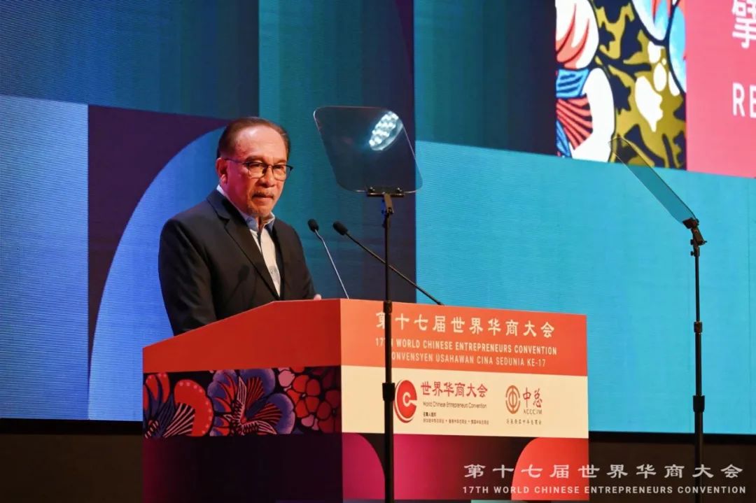 马来西亚总理安瓦尔在开幕式演讲中表示,在当今充满复杂性和不确定性的世界中,全球华商承担着更大责任,可以在维护地区经济合作、确保关键供应链安全以及推动全球社会经济发展议程中扮演更重要角色。他指出,马来西亚与中国长久以来保持着深厚且坚实的双边关系。中国已连续15年成为马来西亚最大贸易伙伴。双方达成的一系列合作计划,为两国在关键创新领域进一步加强合作奠定坚实基础,并将助推经济发展。