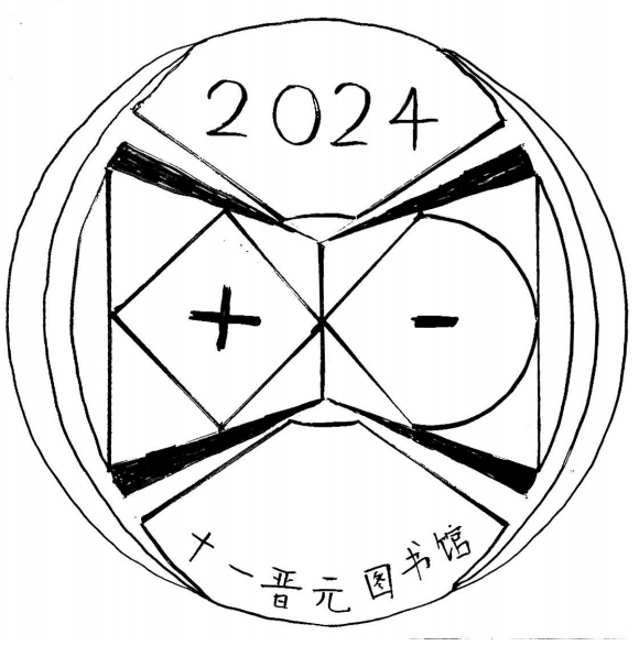 此藏书章外圆内方,体现十一学子思方行圆的理念。中间是一本展开的书,书是方形的,有变体,象征着我们通过读书深思领悟成长,成为一个坚持原则,但不拘泥规则的人。2024年是甲辰龙年,标志以“龙”型为核心。造型呈繁体“書”字,表示图书馆。寓意是晋元少年以书为路,层层进阶,勇攀龙首。“十一晋元图书馆 2024”的logo以独特的设计展现出丰富的内涵。整体字体的变形设计融入一个圆圈,象征着知识的完整与无限循环。圆圈代表着包容与统一,寓意着图书馆海纳百川,容纳古今中外的各类知识,为读者提供全面而广泛的阅读资源。字体变形藏书章样式的设计则赋予了这个logo 一份古朴与厚重。它仿佛在诉说着知识的传承与积累,就像一本本珍贵的藏书,承载着历史的智慧和岁月的沉淀。2024 这个时间标识,不仅记录了当下,更象征着图书馆在这一年以及未来不断发展、与时俱进的决心。它预示着图书馆将紧跟时代步伐,不断更新和丰富馆藏,以满足学生读者日益增长的知识需求。整个 logo 体现了十一晋元图书馆在 2024年作为知识宝库的坚守与创新,致力于为学生打造一个充满魅力与智慧的知识殿堂。主体为圆形设计,外圆加粗,表达图书馆的厚重,内圆上半部分是20,下半部分是24,左半部分上面的 2 演绎了晋字,左半部分下面的2演绎了元字,0中有图书,开启我们的晋元中学读书之旅。