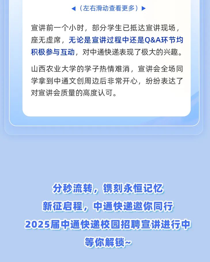 校园招聘宣讲会正在火热进行ing~与中通快递一起揭秘职场新篇章吧!
