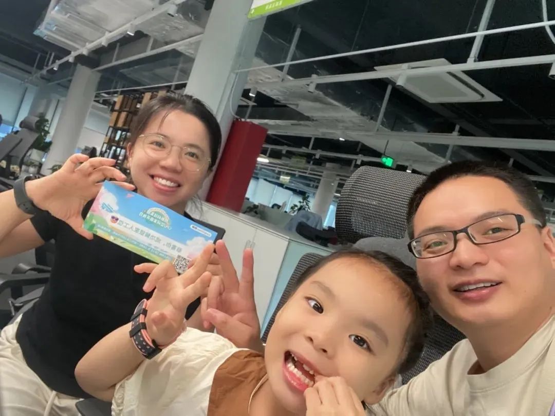 “我找到啦!在这里!”原来是工位探秘打卡游戏,孩子们好奇地东瞧瞧、西看看,终于惊喜地找到了藏在工位上的卡片。寻找卡片的过程,也是孩子们了解父母工作环境的过程。