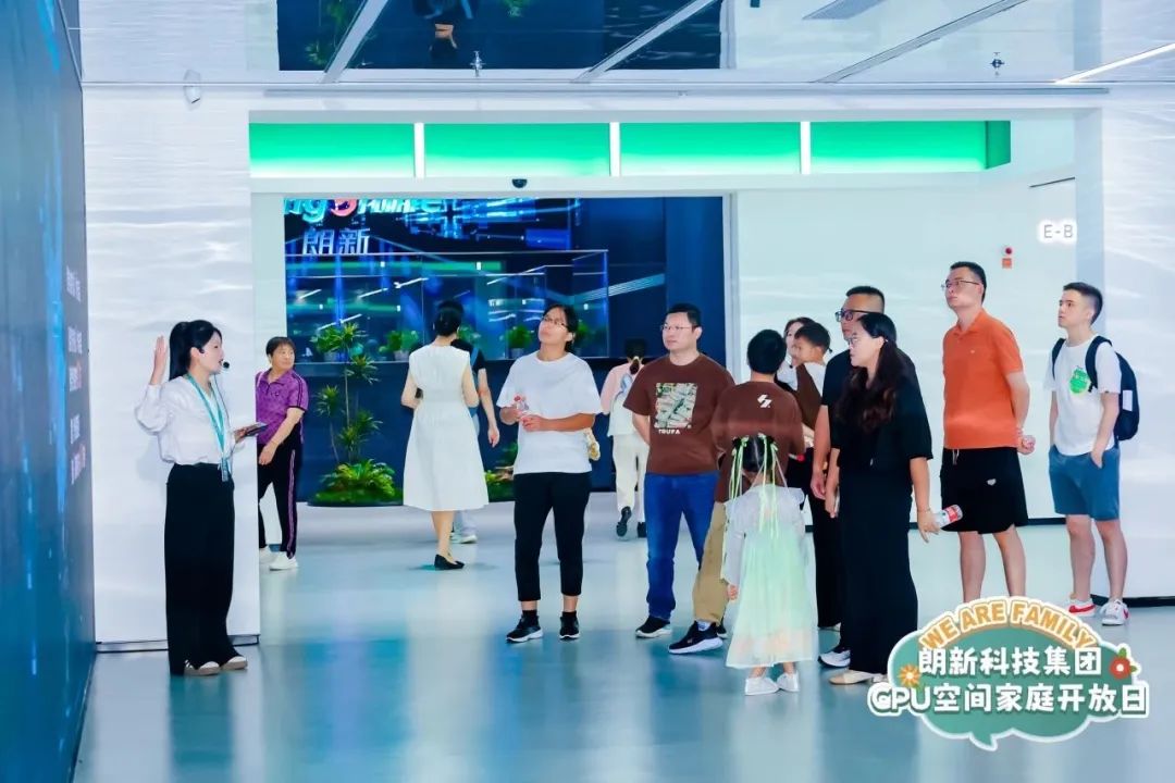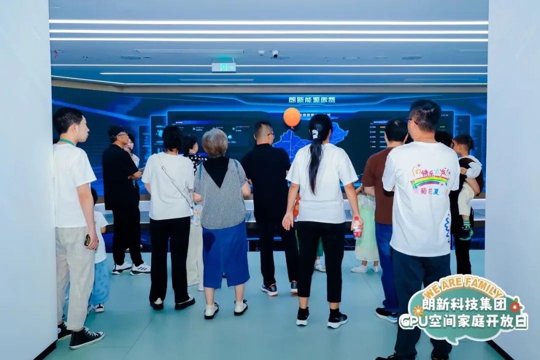 “原来你们公司这么酷!”来到朗新科技展厅,大家仿佛穿越到了科幻世界,充满科技感的数字人、E-BOX全息投影和光子玻璃幕墙让家属们对公司的虚拟电厂、生活缴费、新能源聚合充电以及零碳园区等业务有了初步了解,更在小朋友们的心中播下了科技的种子。