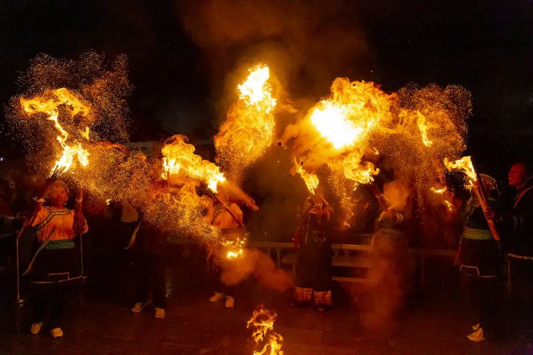 深夜,醉意绵绵,广场上堆起两层楼高的巨大火把,人们在阿诗玛的带领下围圈跳舞、歌唱,“嗨皮”一整夜。