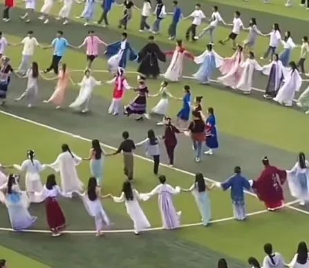 学生在操场上打跳
