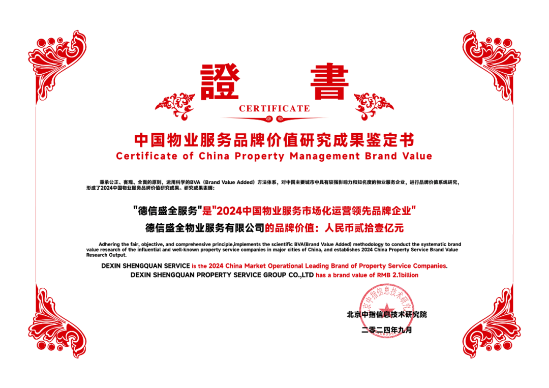 德信服务凭借稳步增长的经营业绩、持续拓展的市场规模以及卓越的服务品质蝉联“中国物业服务市场化运营领先品牌企业”。