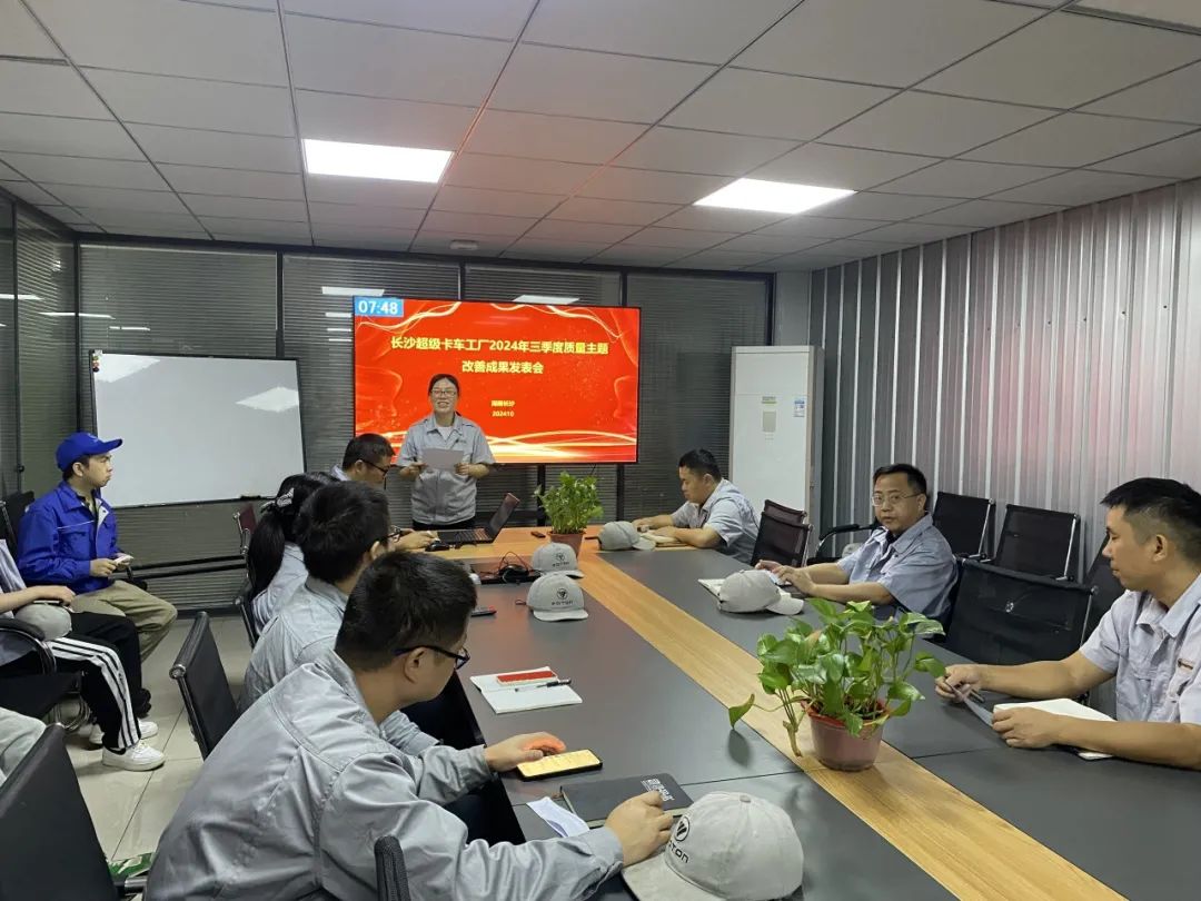 为营造工厂全员改善的氛围,形成工厂自主改善的意识,各单位瞄准现场、紧跟目标开展了一系列改善工作,形成“增强质量意识、落实质量行动、持续追求卓越”的制造质量文化。10月10日下午,长沙超级卡车工厂召开三季度质量主题改善成果发表会,副厂长张守全、各部门高级经理、精益制造管理员、改善指导师及车间班段长代表共计50余人参加。