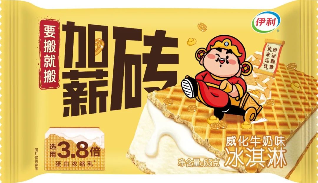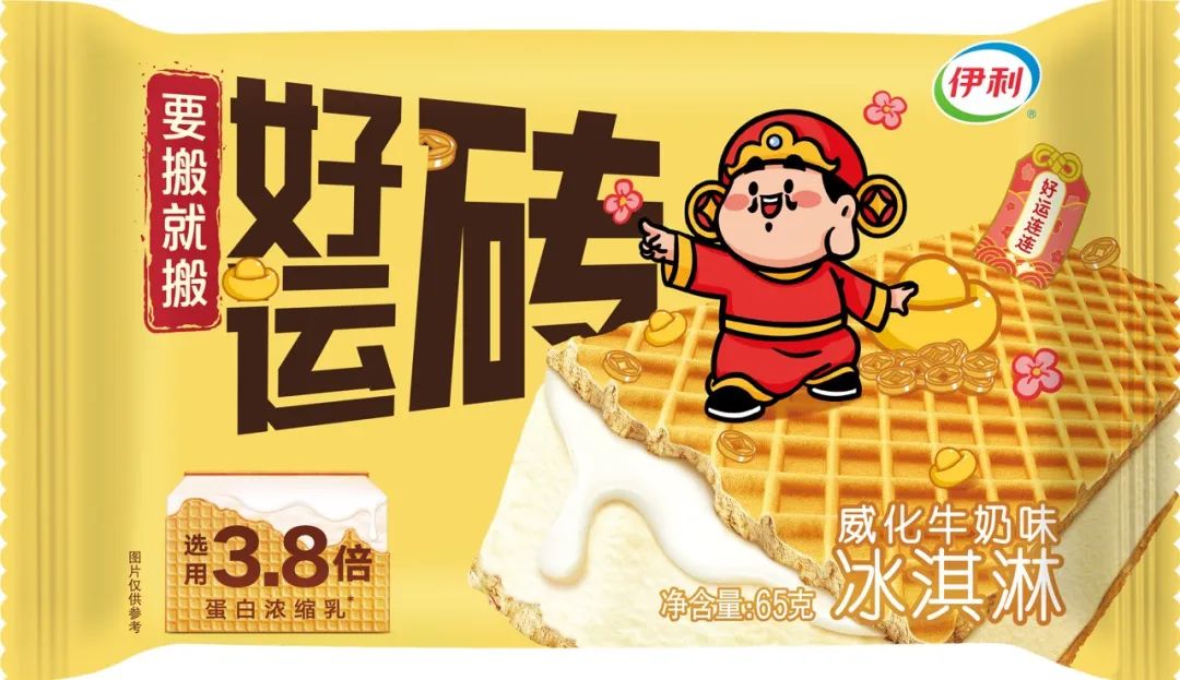 其中伊利威化牛奶味冰淇淋以其独特的威化夹心设计脱颖而出。这款冰淇淋采用上下两片威化饼干,中间夹入奶味浓郁的冰淇淋糕体,通过精心的生产工艺,有效解决了威化饼干与冰淇淋糕体易分离的行业难题。此外,伊利冷饮创新研发的高膨化、强奶油感冰淇淋配方,不仅降低了冰凉感,还提升了口感的细腻度。在储运方面,伊利威化牛奶味冰淇淋展现了出色的保形性和抗融性,确保消费者能享受到优良的产品体验。包装设计上,伊利冷饮也别出心裁,推出了多种版面的包装,趣味文案吸引消费者关注,以满足不同消费者的情感需求,增强产品的市场竞争力。