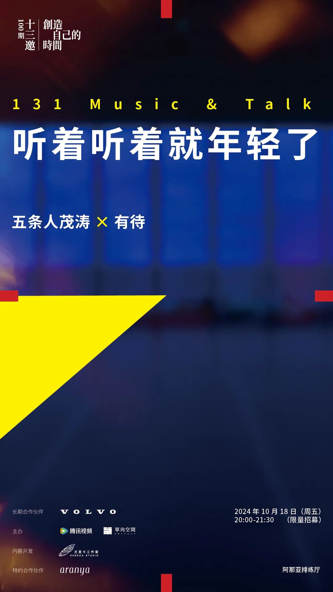 本次活动的开端,我们请到五条人乐队的茂涛以及DJ有待,他们将从个人听觉体验出发聊到多年来的各种音乐实践,如何在充满韵律的节拍中短暂获得超越日常的能量,创造自己的时间,“越听越年轻”。欢迎你来,共度这个言谈、乐曲与海浪声交织的曼妙夜晚。