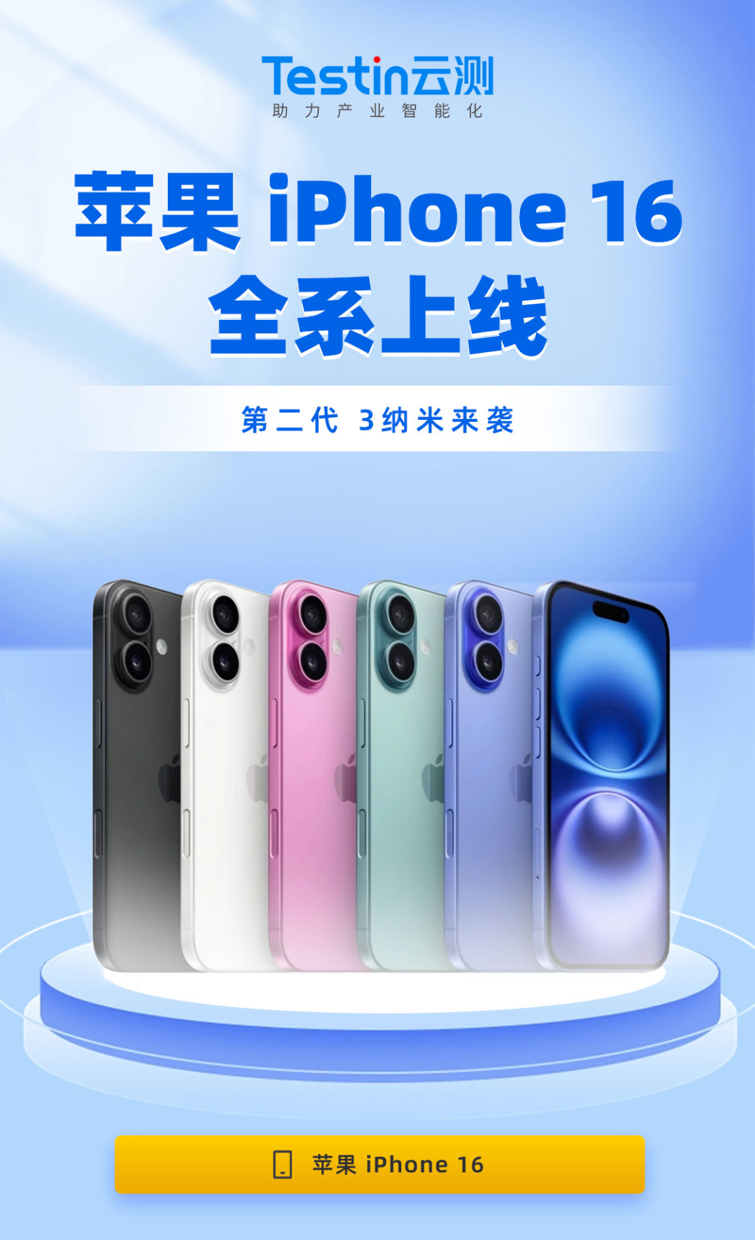 iPhone 16系列采用了苹果迄今为止最硬的强度玻璃,6.1英寸和6.7英寸的屏幕尺寸,不仅提供了更广阔的视野,更是对屏幕的极致保护。首次引入“操作按钮”,这一此前Pro系列独有的功能,现在在iPhone 16和iPhone 16 Plus上也能享受到。用户可以自定义快捷操作,让日常使用更加得心应手。全新A18芯片,第二代3纳米工艺,性能的跨代提升,不仅驱动了摄影风格和相机控制的新锐拍摄功能,更将游戏体验提升至主机级别。4800万像素主摄像头,融合2400万像素照片,2倍光学变焦,杜比视界4K 60帧视频拍摄,超广角镜头支持自动对焦和微距拍摄,iPhone 16系列的影像能力再次刷新行业标准。iPhone 16 Pro和iPhone 16 Pro Max带来了有史以来最大的屏幕尺寸,6.3英寸和6.9英寸,以及最窄边框设计,提供了无与伦比的视觉体验。A18 Pro芯片,16核神经引擎,专为生成式AI设计,系统内存总带宽增加近20%,性能和智能体验达到新的高度。您无需购买测试设备占用资金和时间,Testin云测将依托丰富的测试资源、自动化测试技术、专业的测试团队为您提供高质量的软件测试服务体验。点击阅读原文,立即注册Testin云测,让您的应用在iPhone 16系列上大放异彩!Testin云测创立于2011年,是一家以人工智能技术驱动的企业服务平台,为全球超过百万的企业及开发者提供云测试服务、AI训练数据服务、安全等服务。Testin云测的使命是助力产业智能化,即在全球产业化升级浪潮中,通过为企业客户提供核心技术、产品工具和专业人才三位一体的综合服务,加速企业移动化、数字化、智能化转型升级的进程,为企业的长久发展提供助力,释放企业创新力量,赋能企业改变世界。