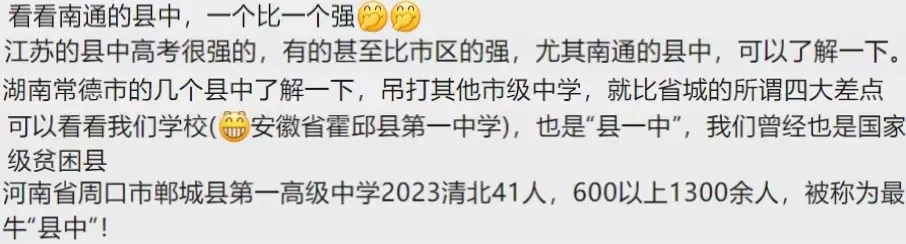 上周,在《最高分仅超一本线10分:县城中学再难出清北,学生正被“剩下”?》一文的评论区中,大家给我们分享了很多优秀的县中