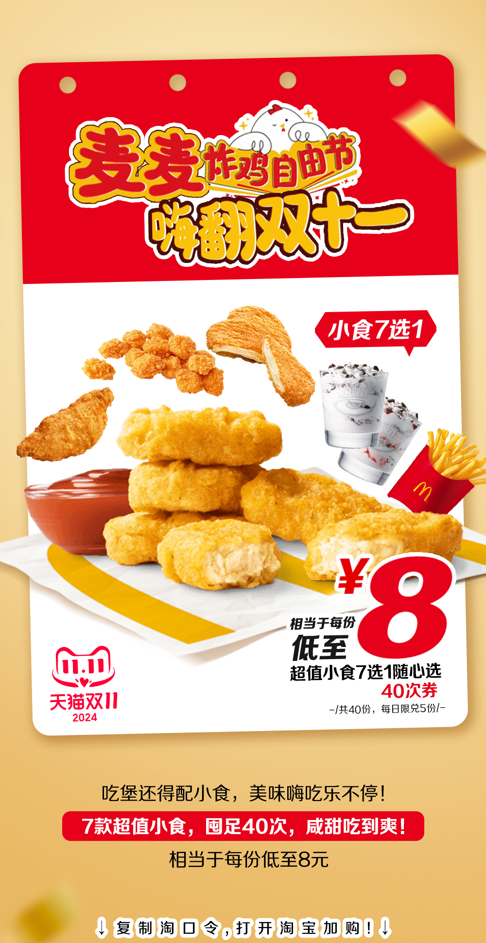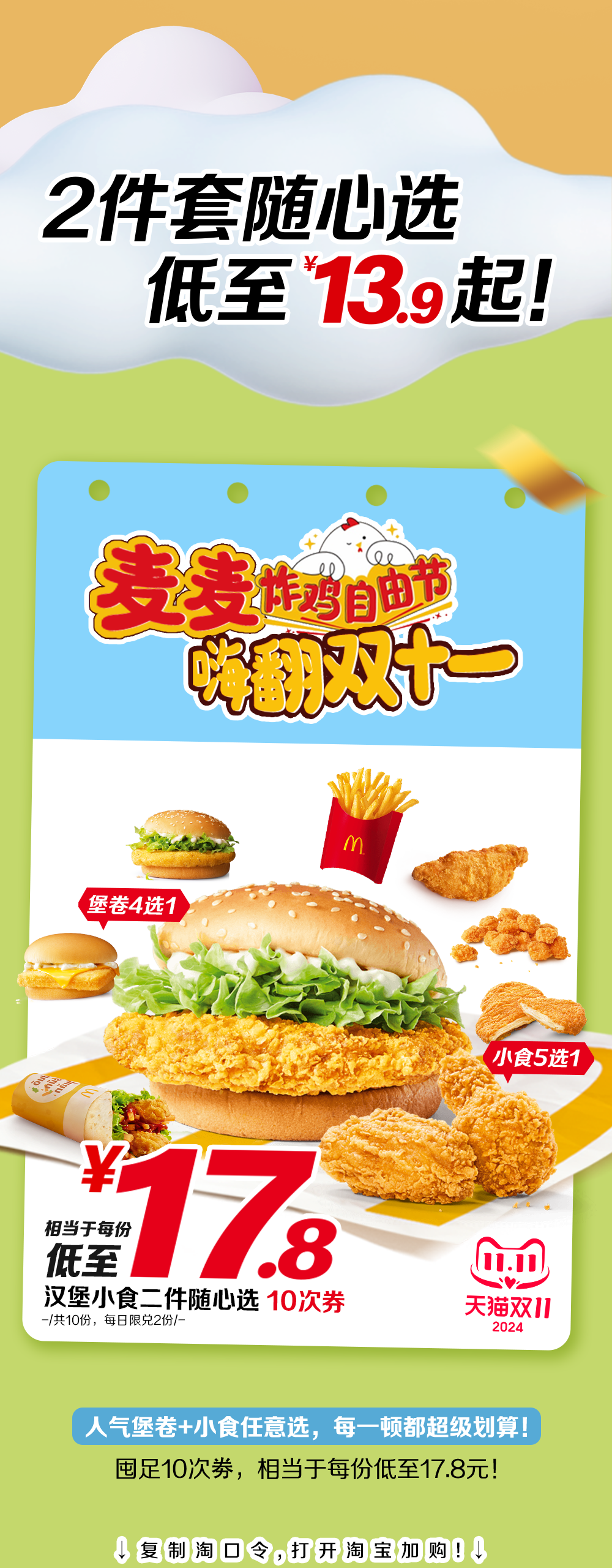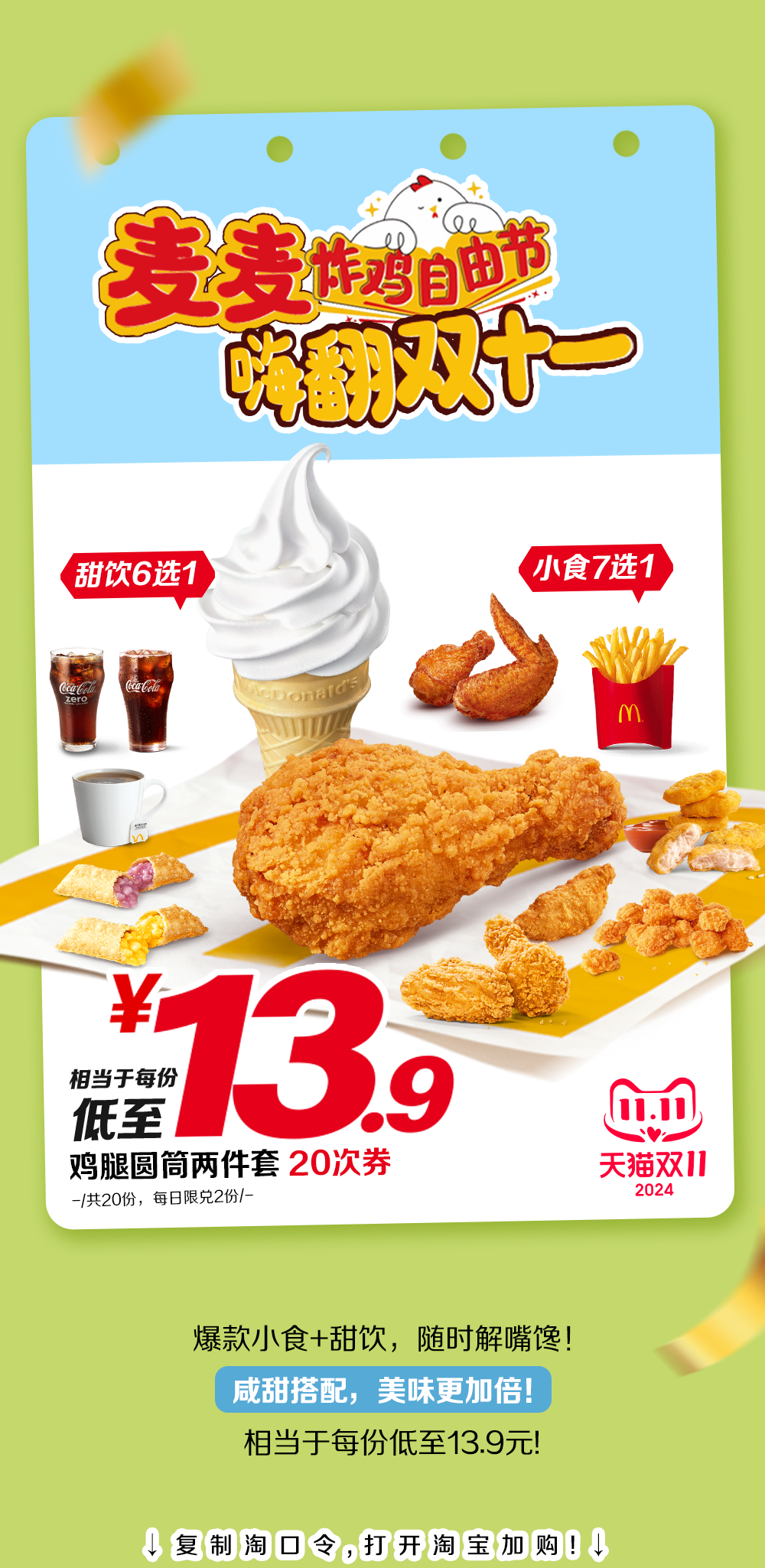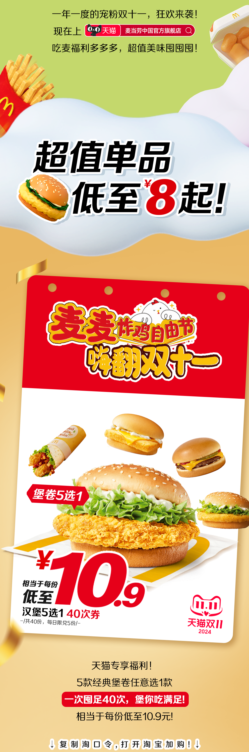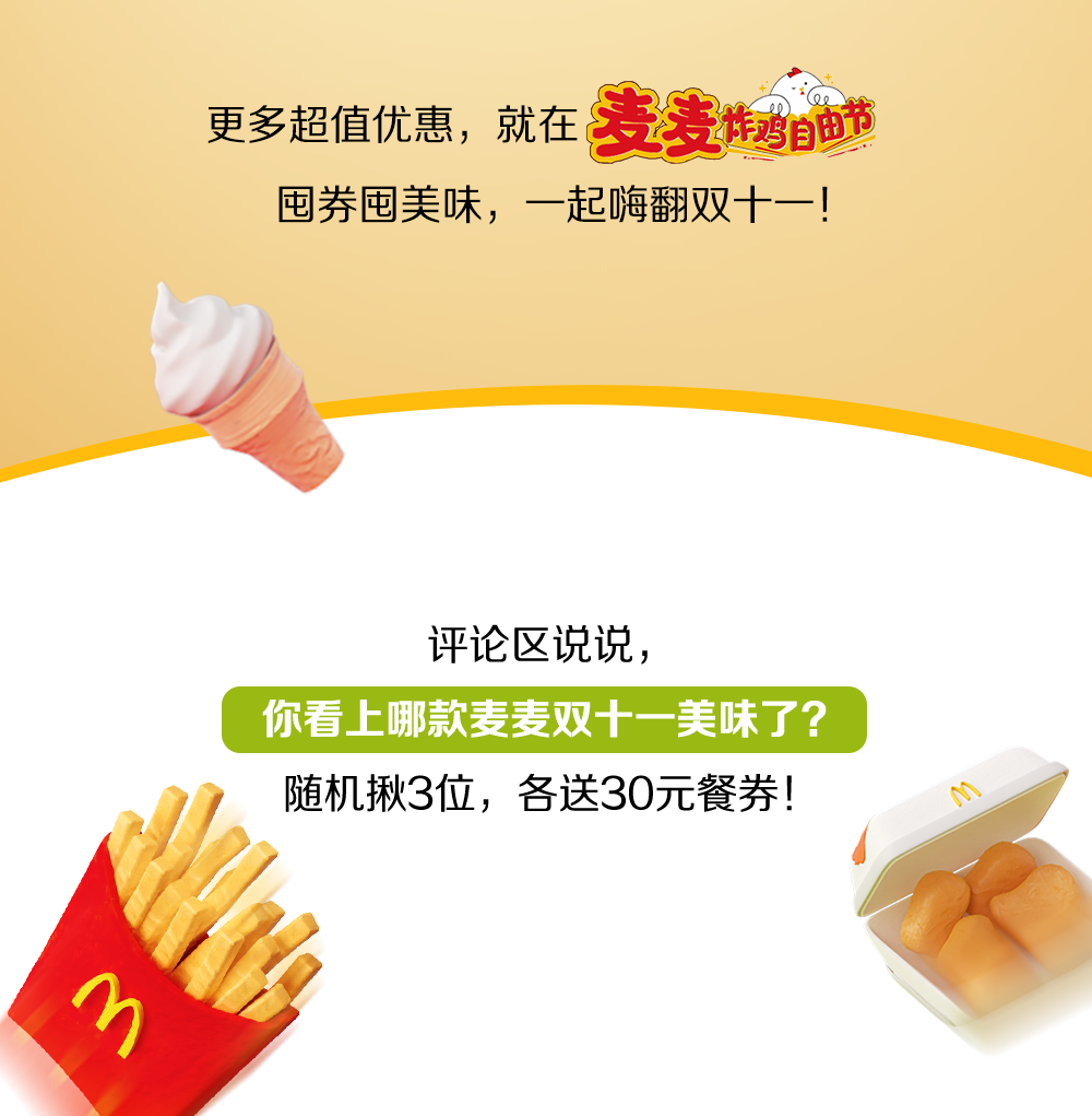 【1F 麦当劳】双11开囤 ▶ 8元吃鸡!10.9元吃堡!