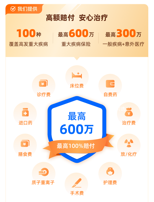 尊享e生百万医疗险主要保障咱们的住院医疗费用,包含一般医疗保险金、重大疾病医疗保险金、恶行肿瘤质子重离子医疗保险金、恶行肿瘤院外特定药品费用医疗保险金等合计最高600万元。