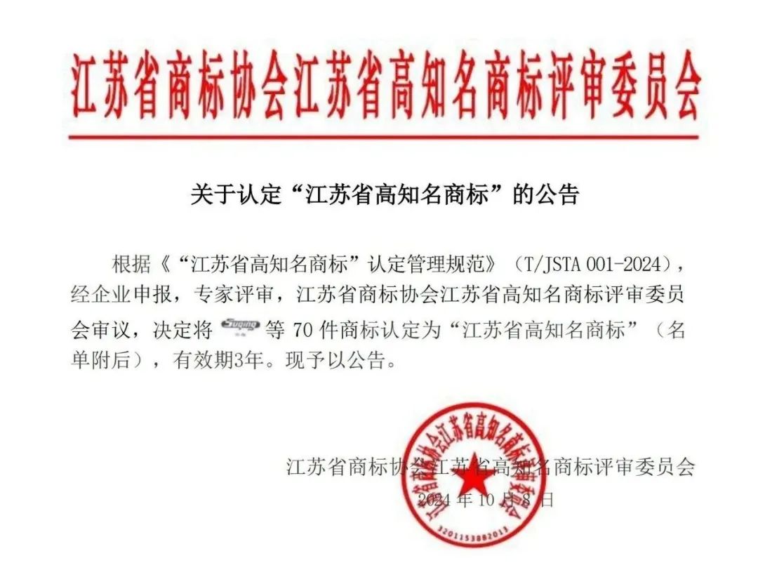 据悉,江苏省商标协会宣布启动2024年度江苏省高知名商标及江苏省重点商标保护名录申报工作。将通过高知名商标的认定、使用、管理和宣传,鼓励和引导更多的企业争创江苏高知名商标,进一步形成江苏品牌效应,服务品牌强省建设。