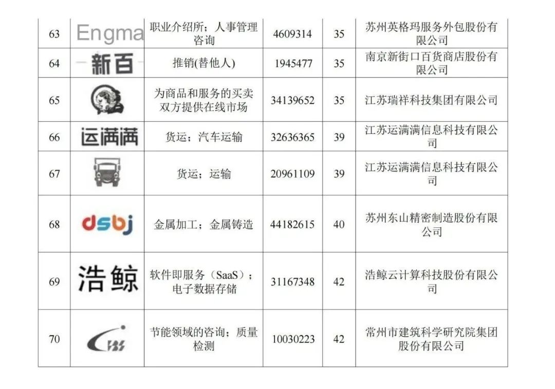 (江苏省高知名商标部分人选名单)