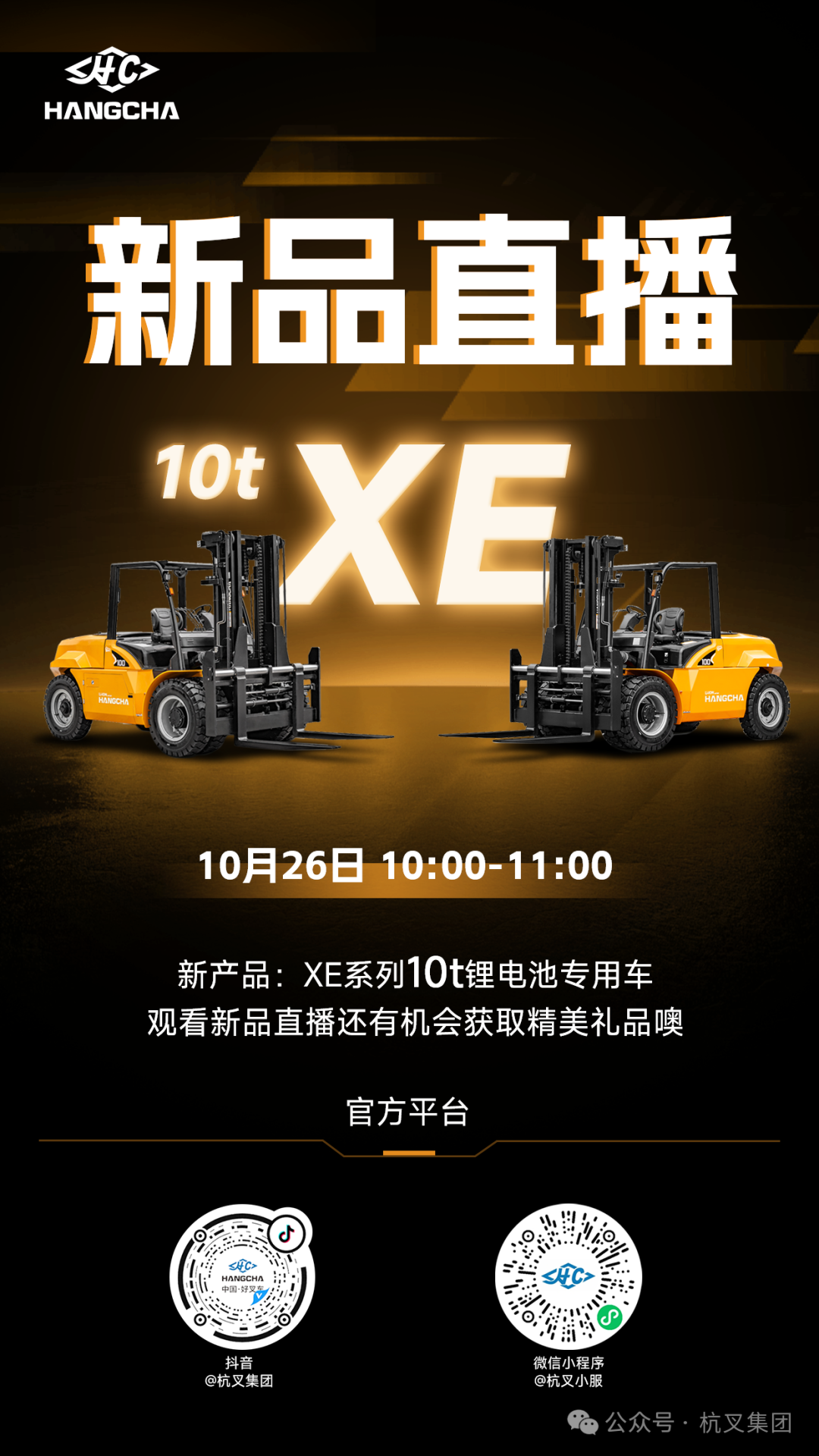 直播预告|全新平台、高效节能——XE系列10吨锂电池专用车新品直播!