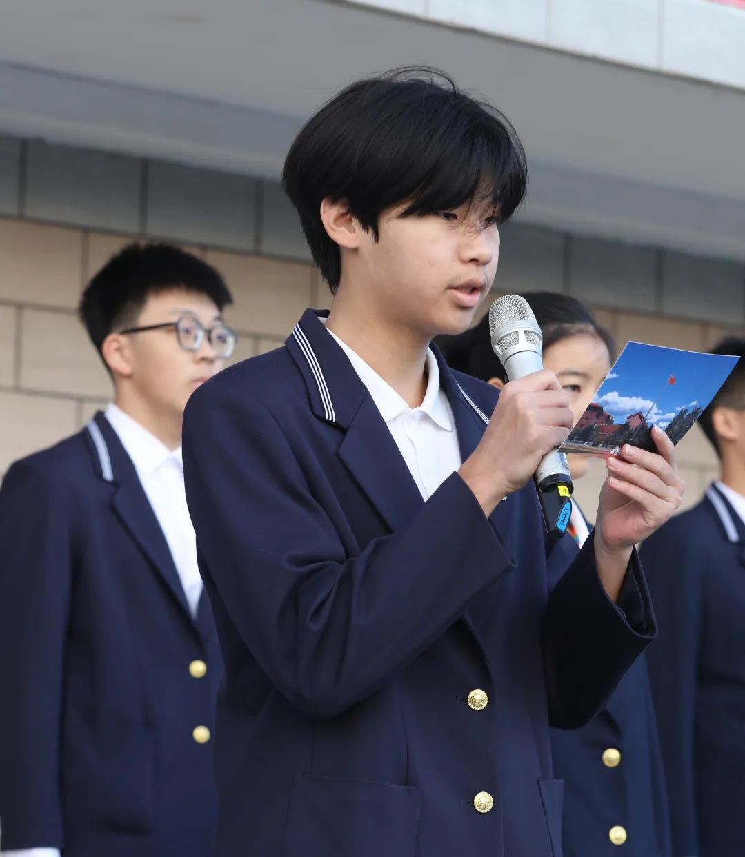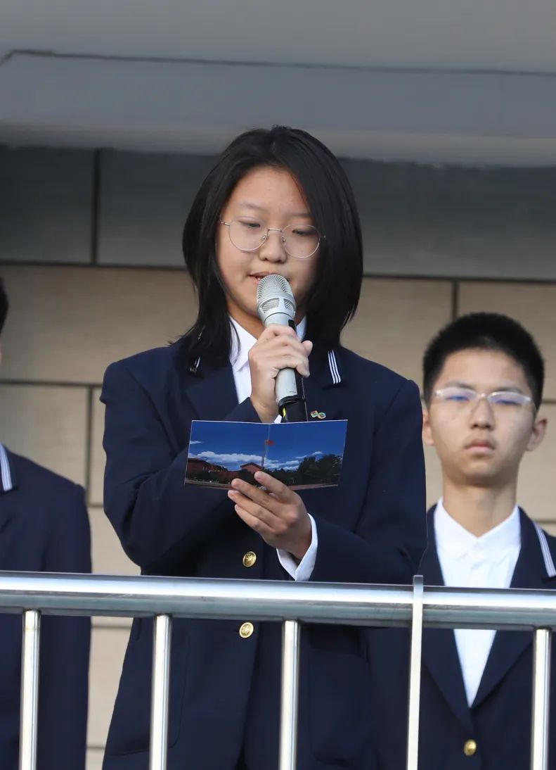 2024年10月15日,第十八届国旗方队的队员圆满完成了为期一年的执勤,将这份光荣的使命传递给了新一届国旗方队。当天早晨7:30,以“新老旗队交接”为主题的升旗仪式在大操场举行,由直升初一的管博轩同学和高一学部的宋沐遥同学担任主持人。