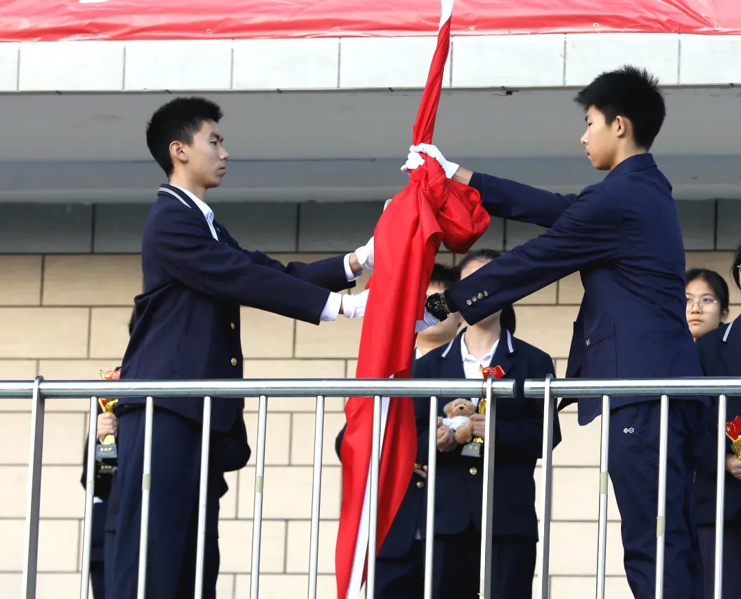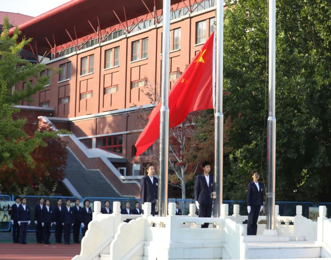 国旗,那一抹历经风雨、见证辉煌的红色,是国家尊严的象征,更是民族精神的炽热火焰。每年,学校都会从高一年级(含国际部)选拔出40余名同学组成国旗方队,队员们肩负着全校升旗仪式的出旗、升旗任务,以及日常的国旗升降工作。