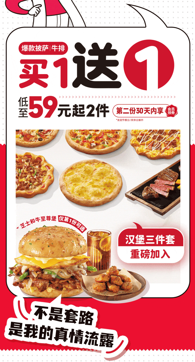 必胜客 |买一送一搞动静,披萨低至59元2件!