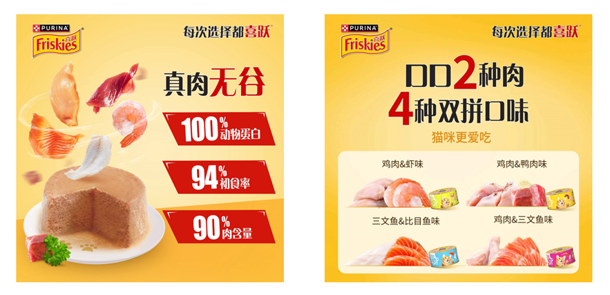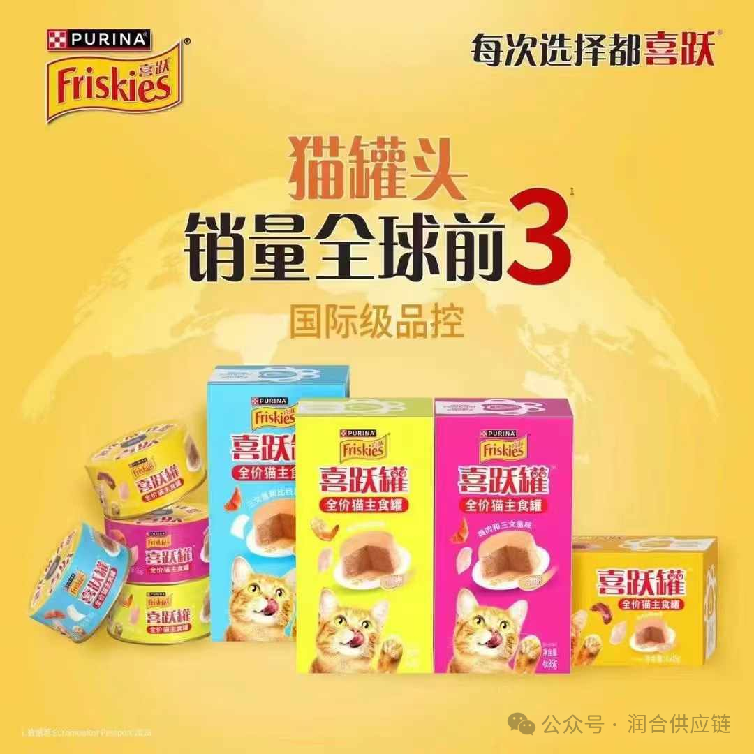 深受门店与消费者双向欢迎与喜爱!门店喜欢,所到之处产品陈列的货满架满;消费者喜欢,喜跃®是雀巢普瑞纳旗下全球猫罐头销量前三品牌。