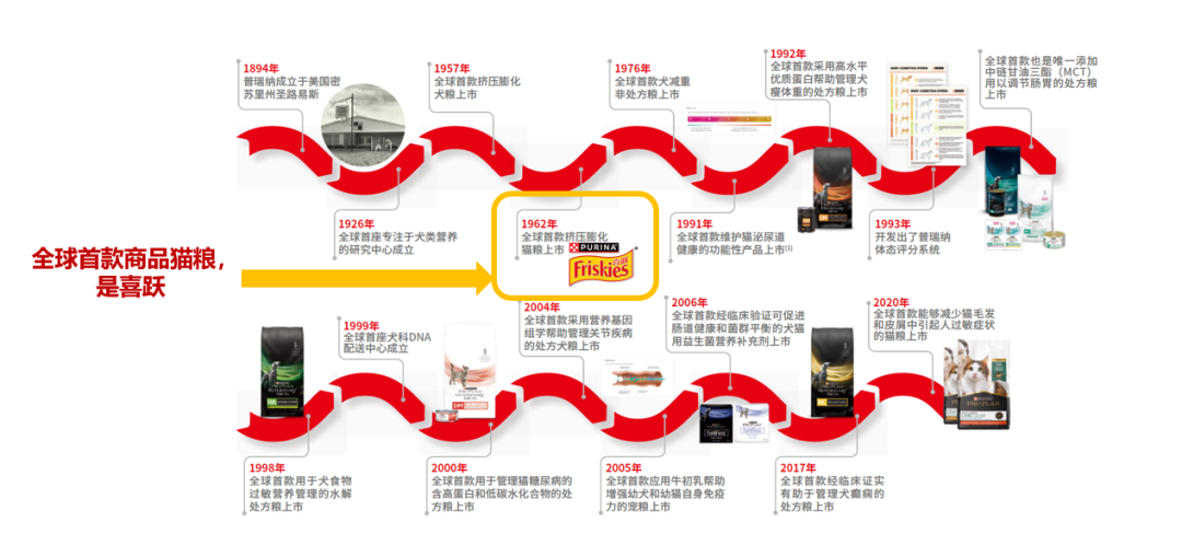 普瑞纳始创于1894年,是全球知名的宠物护理公司。以“延长犬猫寿命,改善犬猫生活质量”为使命,定义并制造了现代宠物粮,并由此开创近百年历史传承,始终践行提供优质营养、实证科研和分享成果的三重承诺。