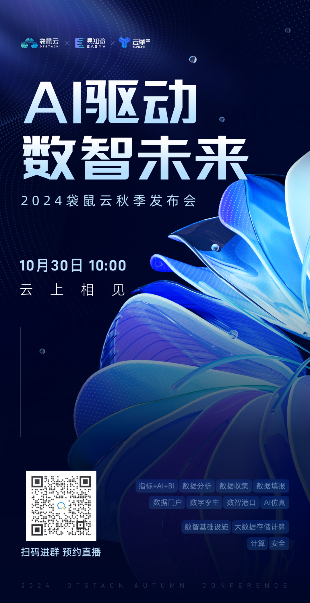 在 AI 逐渐成为企业基础属性的背景下,袋鼠云举办秋季发布会,以“AI驱动,数智未来”为主题,旨在深度探讨如何凭借 AI 实现新的飞跃,重塑企业的经营管理方式,加速数智化进程。