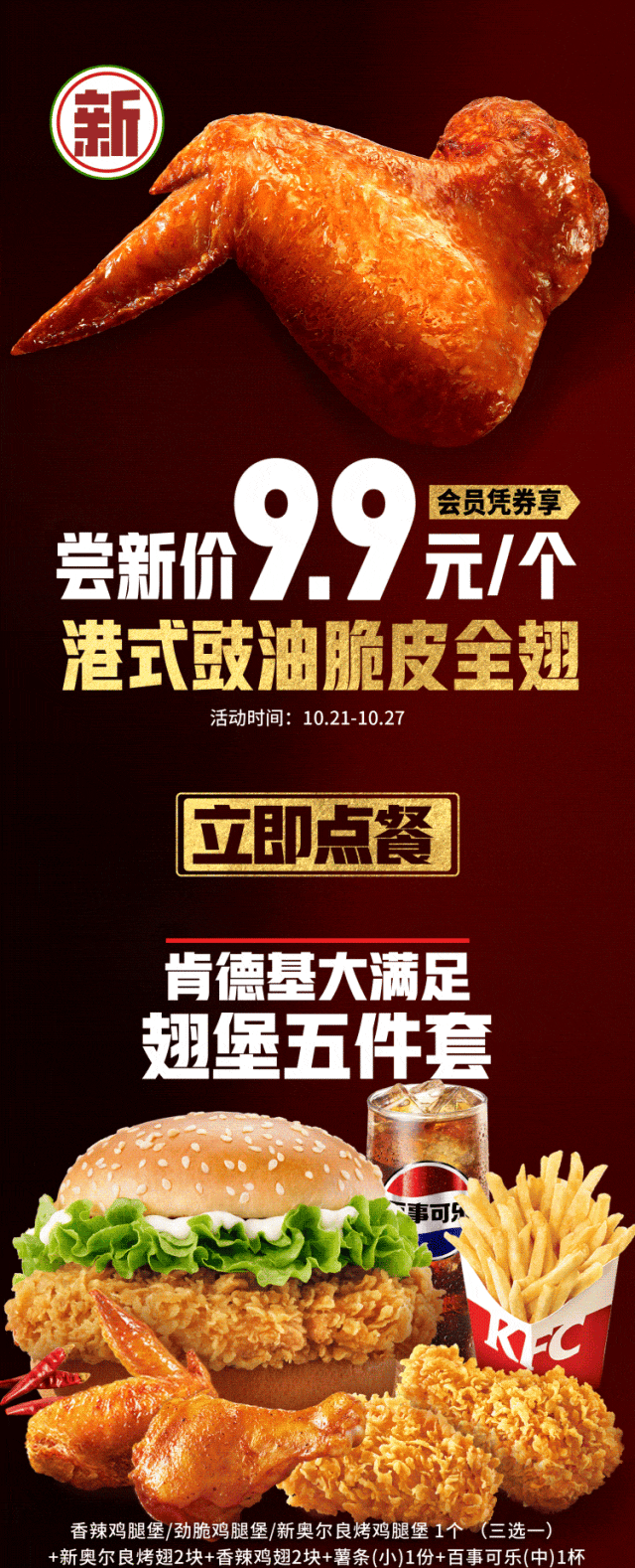 1F【肯德基】¥39.9十翅一桶 | 最后一周别错过!