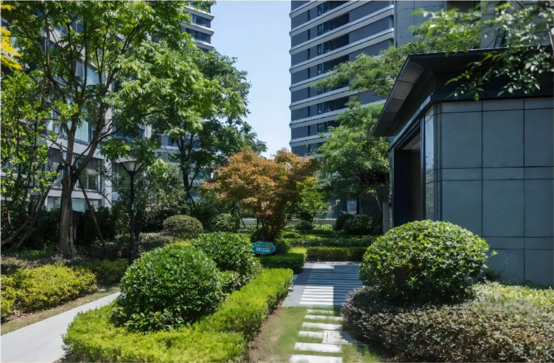 从门口步入小区,映入眼帘的是“一镜到底”的实景园林。开阔的楼间距,整洁的小区步道,一步一景、一景一画,让生活与风景坦然相见。