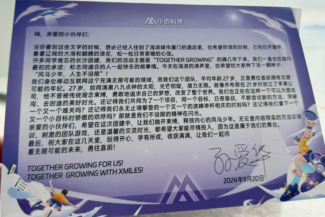 迎接我们的,不仅有宜人的海风,更有爱总鼓舞人心的信,让我们的旅程充满了期待!