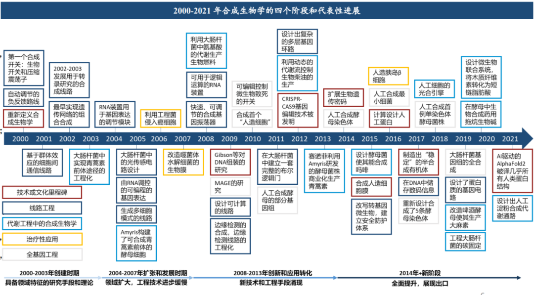 从技术发展、政策、投融资等方面综合来看,合成生物学正处于行业成长期,凭借其在各个领域的广泛应用前景,未来有望推动生产制造升级,带来新一轮产业革命。