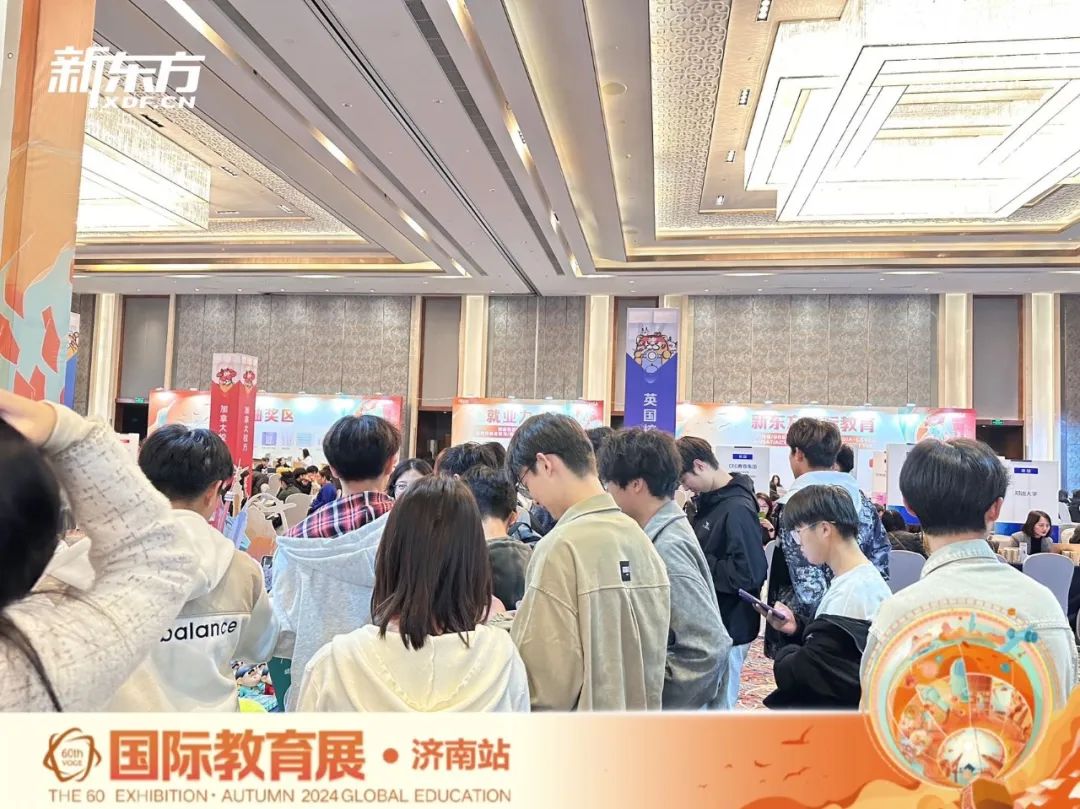 10月27日,新东方第60届国际教育展·济南站在泉城济南香格里拉酒店圆满落幕!现场氛围火爆,活动聚焦于当前国际教育家庭深切关注的几大核心议题:突破教育内卷的策略、多元升学路径探索、教育体系的选择、精准的留学规划、标化考试的备考策略,以及毕业生就业前景。通过新颖独特的视角,展会现场深入展开了一系列讲座与对话,多角度、全方位地为留学家庭答疑解惑。下午1:30,众多家长与学生已提早抵达活动现场,井然有序地排起长队等候签到,签到区域人头攒动,洋溢着热烈而期待的氛围。