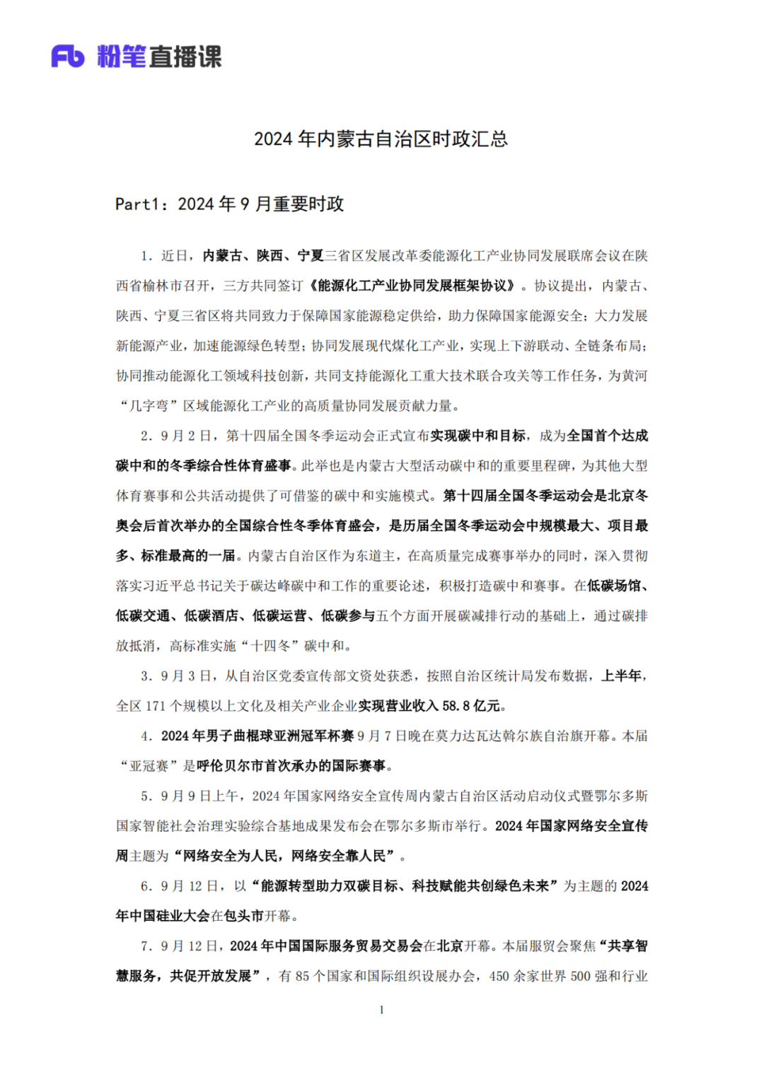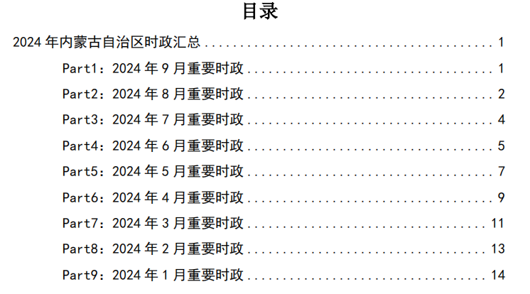 内蒙古1-9月时政资料更新