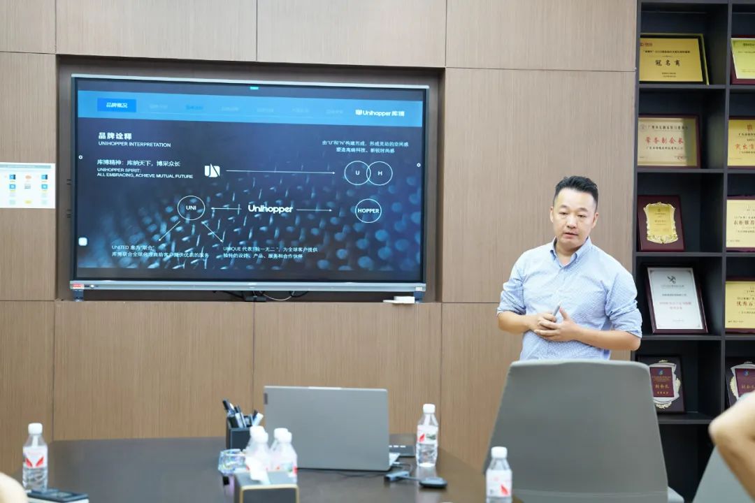 随后,Unihopper库博集团中国区营销总监陈飞峰先生进行了库博品牌分享,内容包括库博品牌全球化、库博“家文化”等。陈总表示,Unihopper库博始终坚持为客户提供专业的服务和优质的产品,期待双方可以在各个领域展开深入探讨,携手共赢,共创未来。Unihopper库博集团中国区营销总监陈飞峰先生在开放交流环节,双方团队就技术研发、产品采购等方面交换经验与想法,在热烈的氛围中,双方不仅在业务上进行了深入的探讨,还在情感上建立了深厚的联系。
